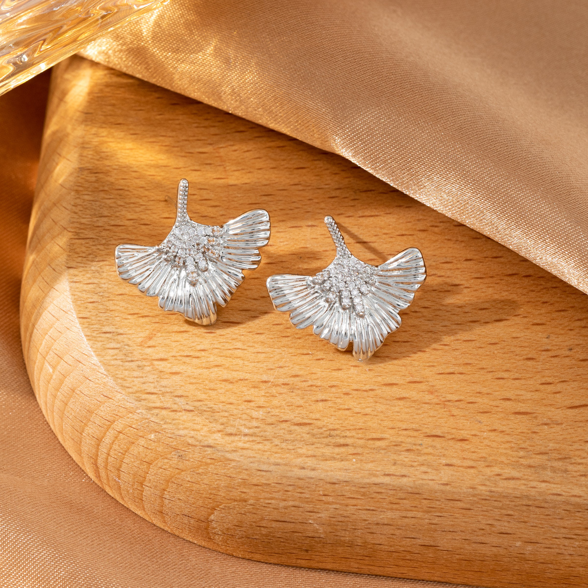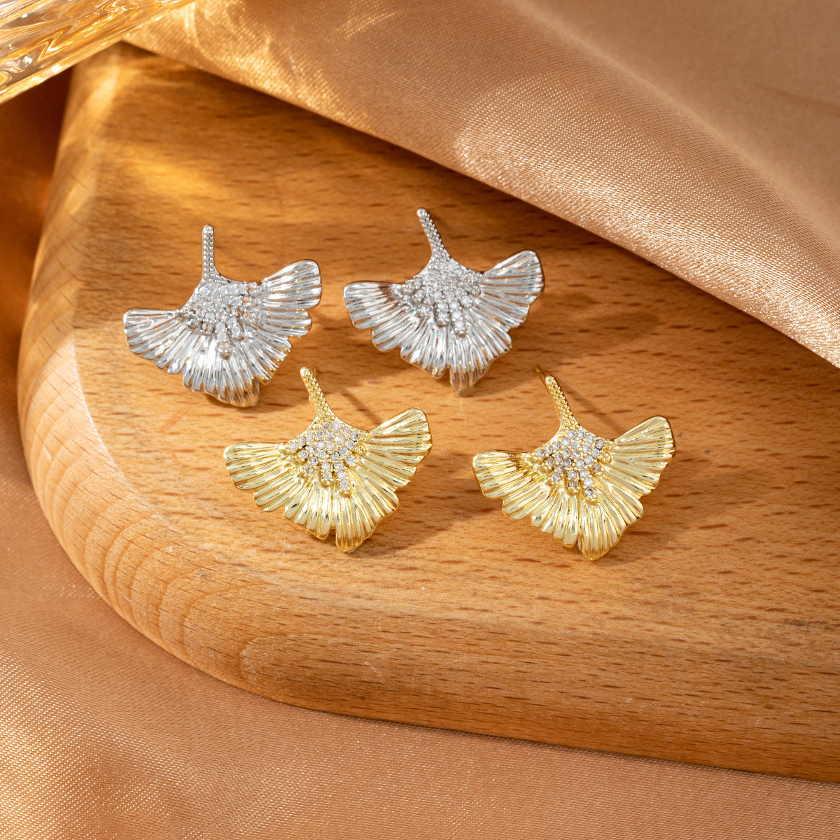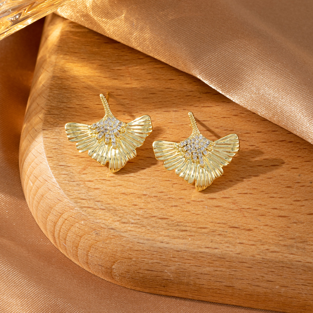 日韩高级感银杏叶扇形耳钉女镀金保色精致简约小众个性清冷感耳饰