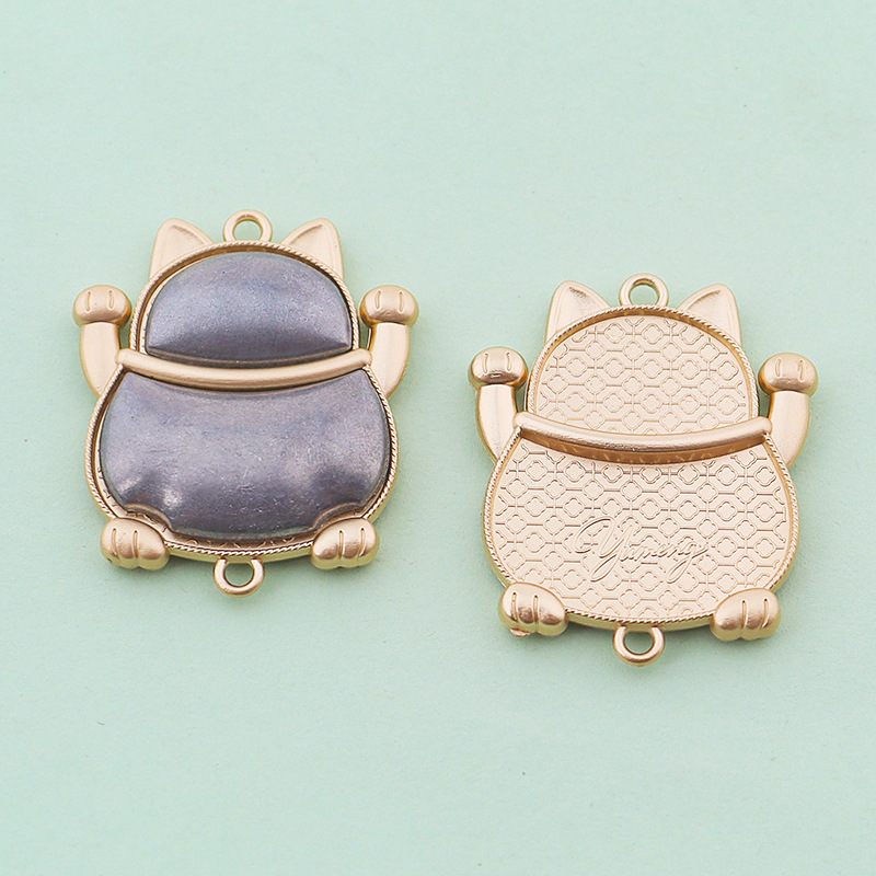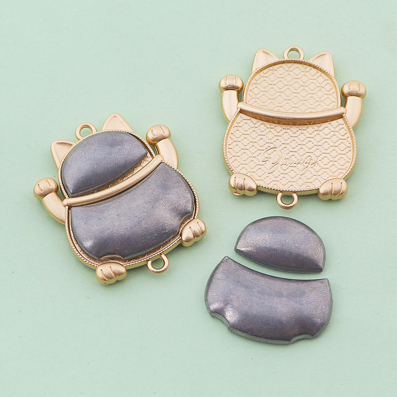 宋锦手工DIY猫咪挂饰保色工艺双面带盖 镶嵌底托饰品配件现货批发
