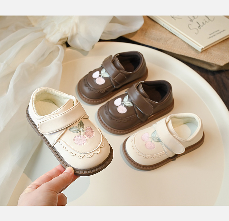 女童国风绣花小皮鞋公主鞋2025春秋新款女宝宝百搭软底魔术贴单鞋