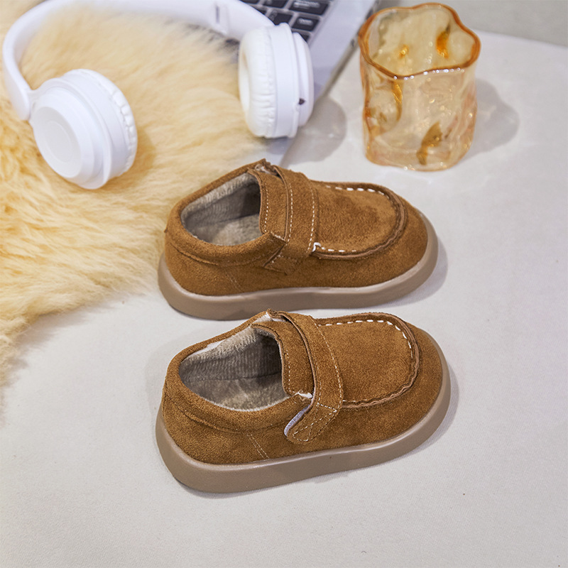 软皮男女童复古小皮鞋加绒2025秋冬季新款1-3岁2宝宝棉鞋小童鞋子