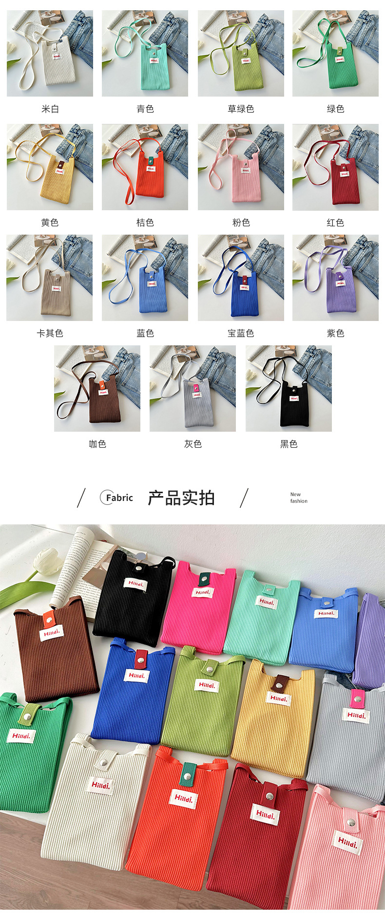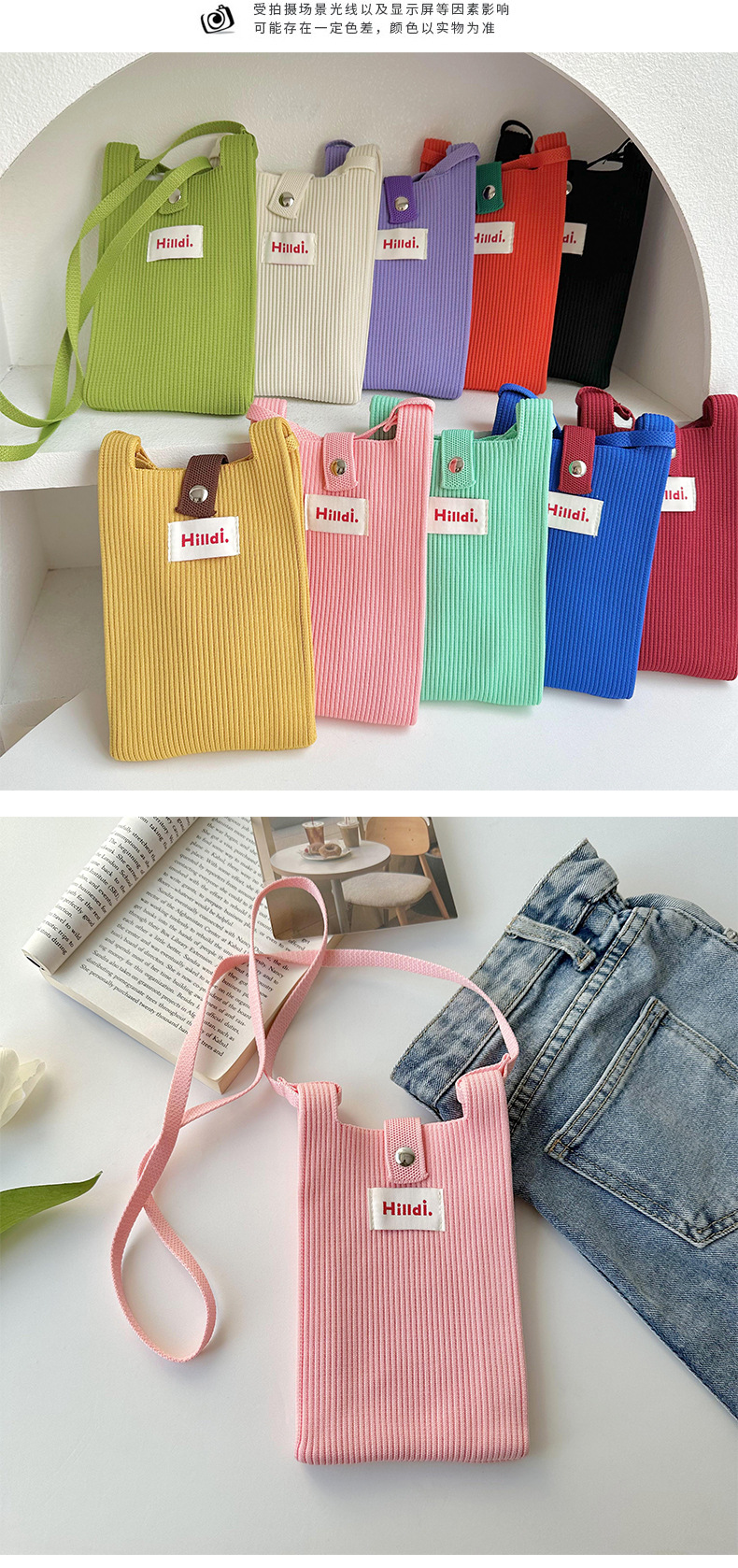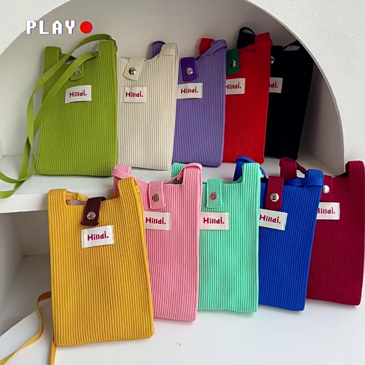 春季新款纯色针织单肩斜挎手机包时髦百搭ins多巴胺小包男女同款