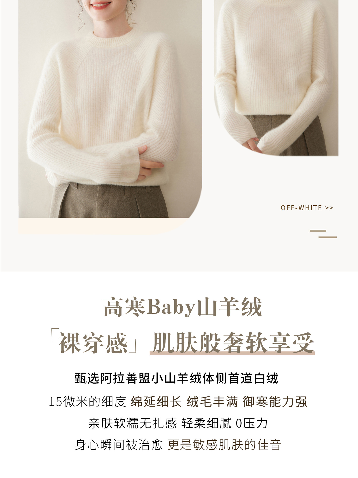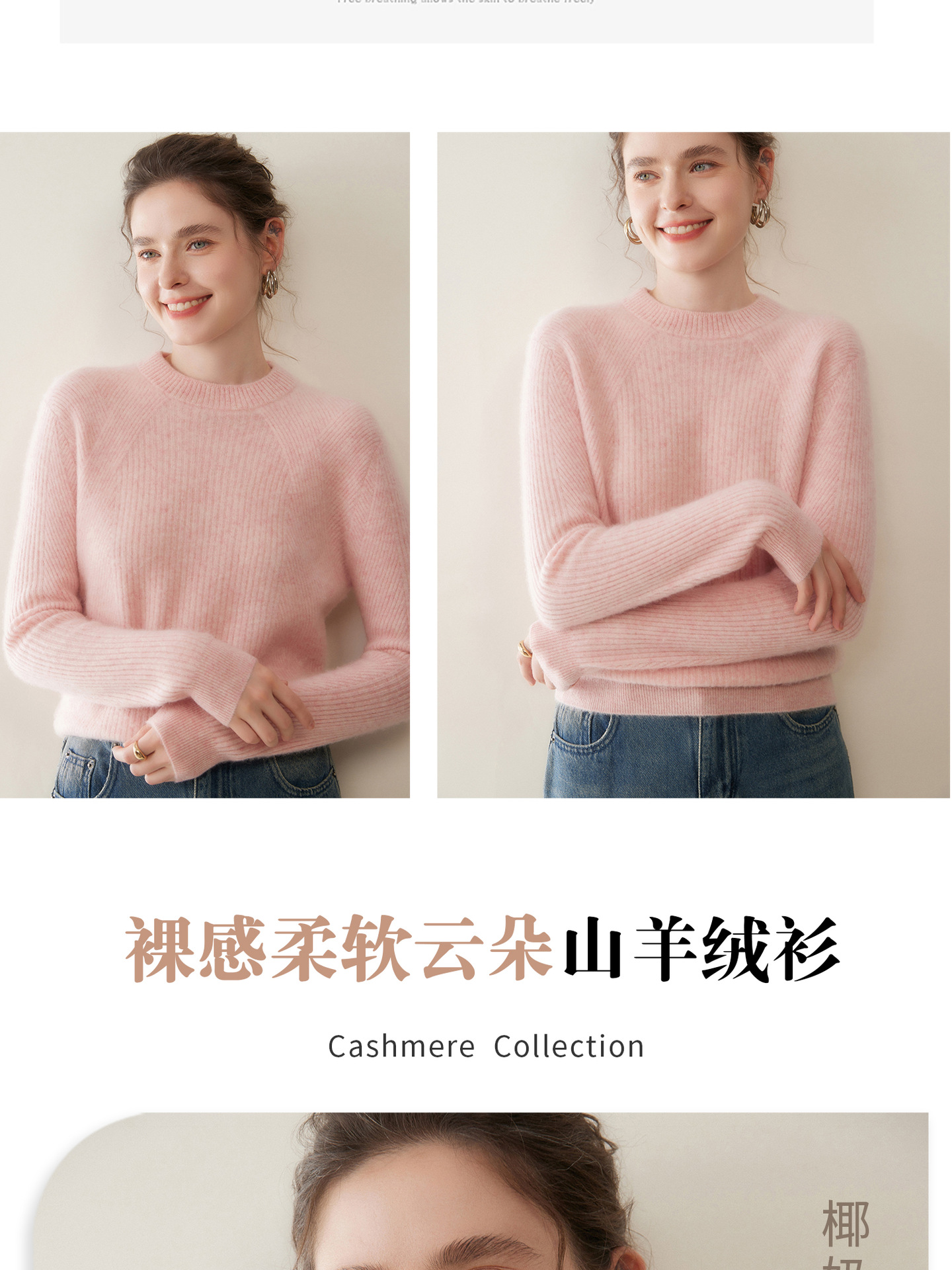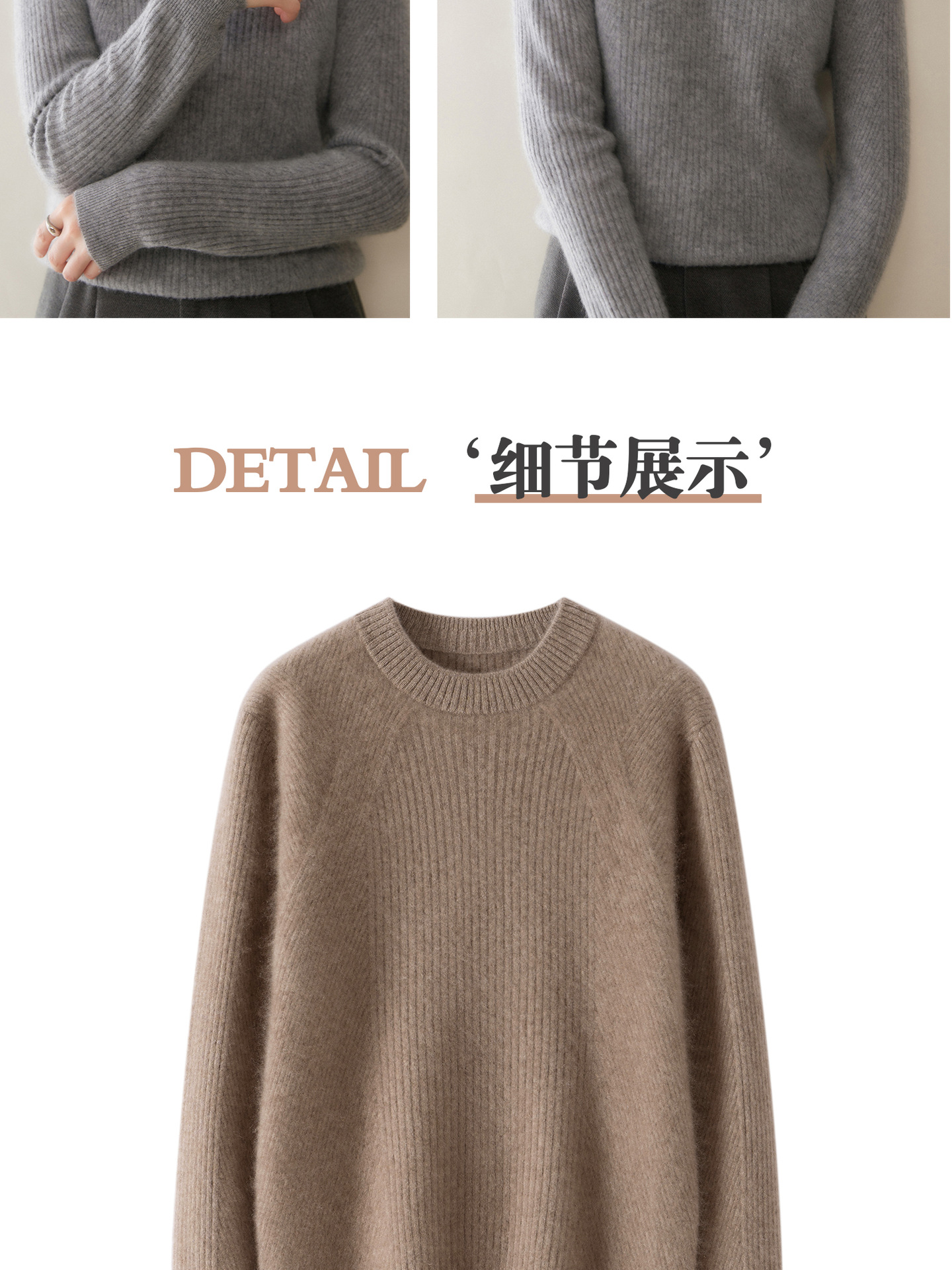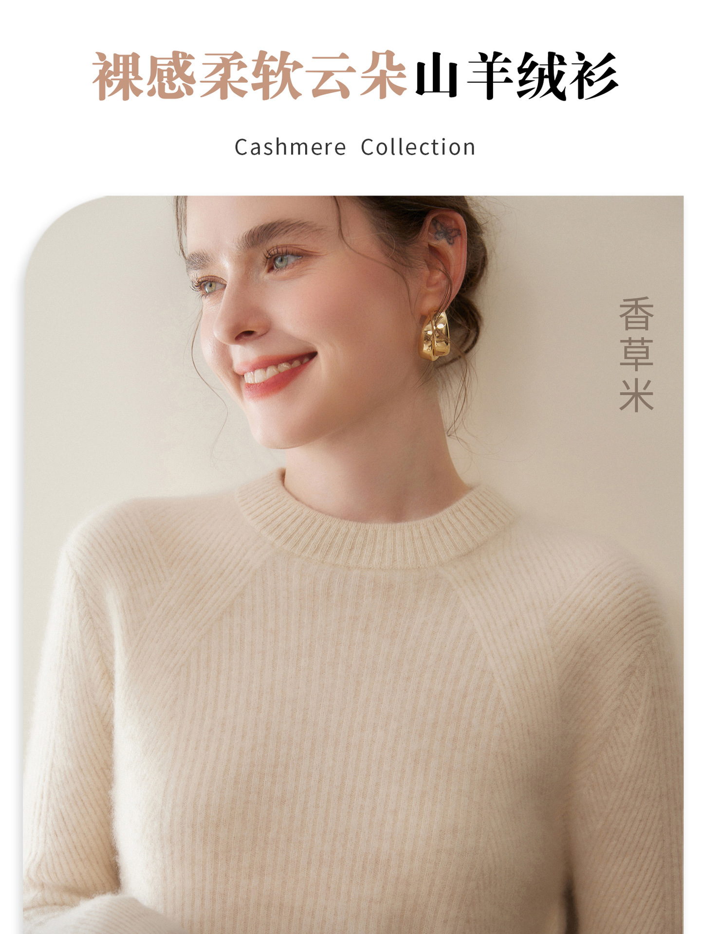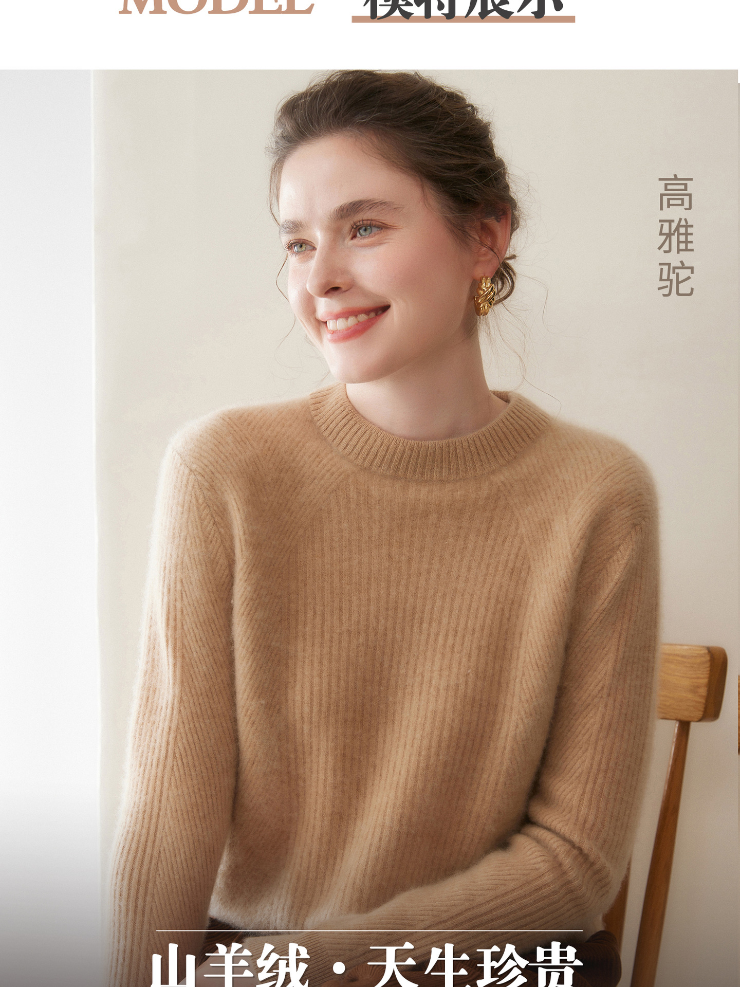 女士圆领山羊绒衫宽松显瘦打底毛衣秋冬季抽条元宝针套头针织上衣