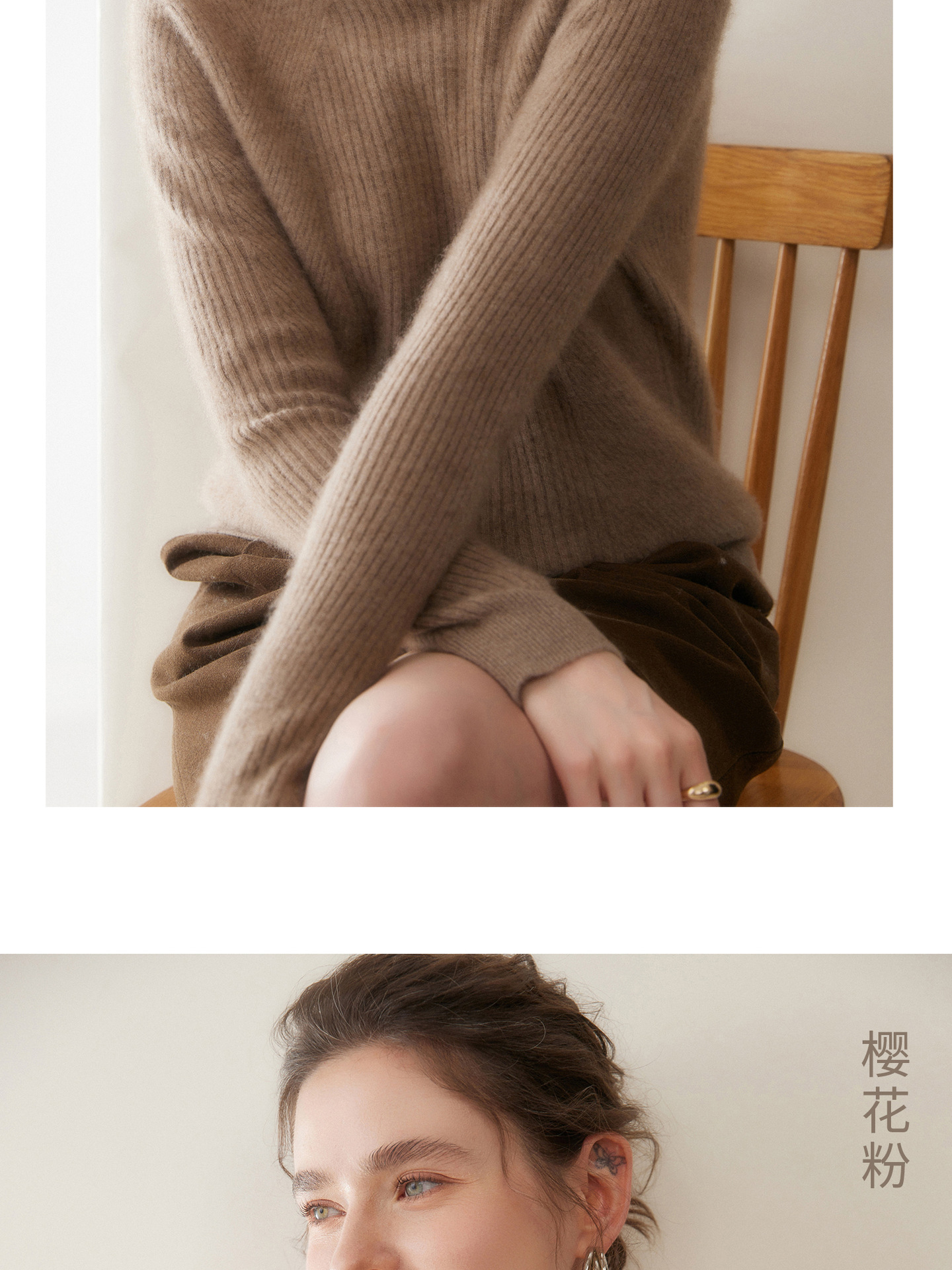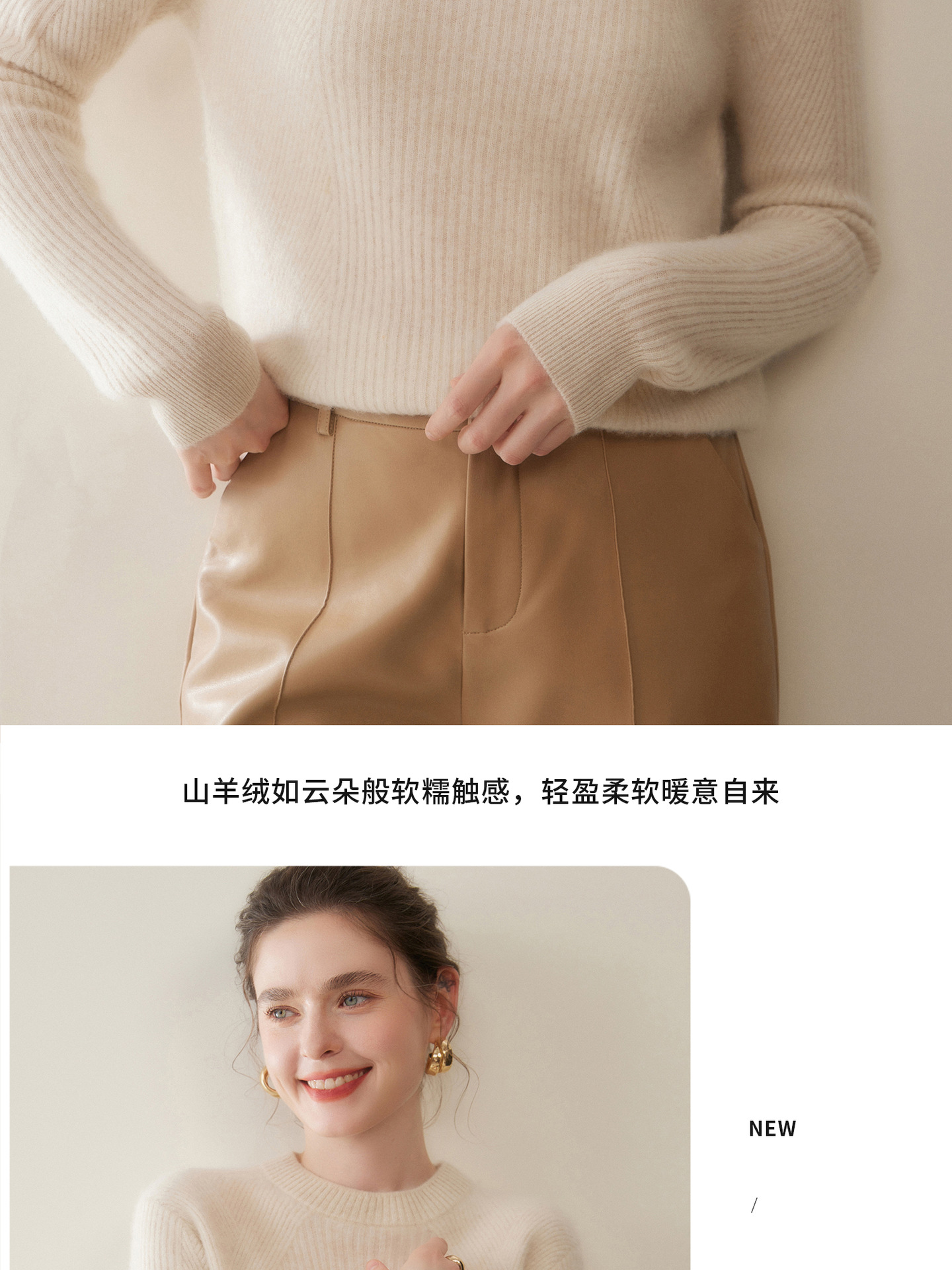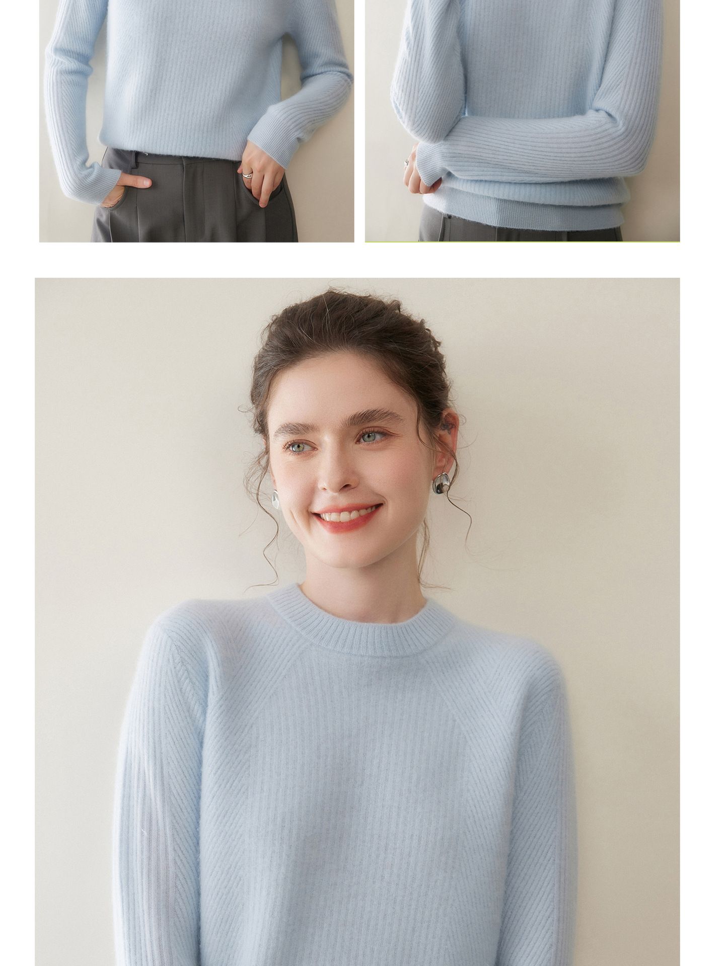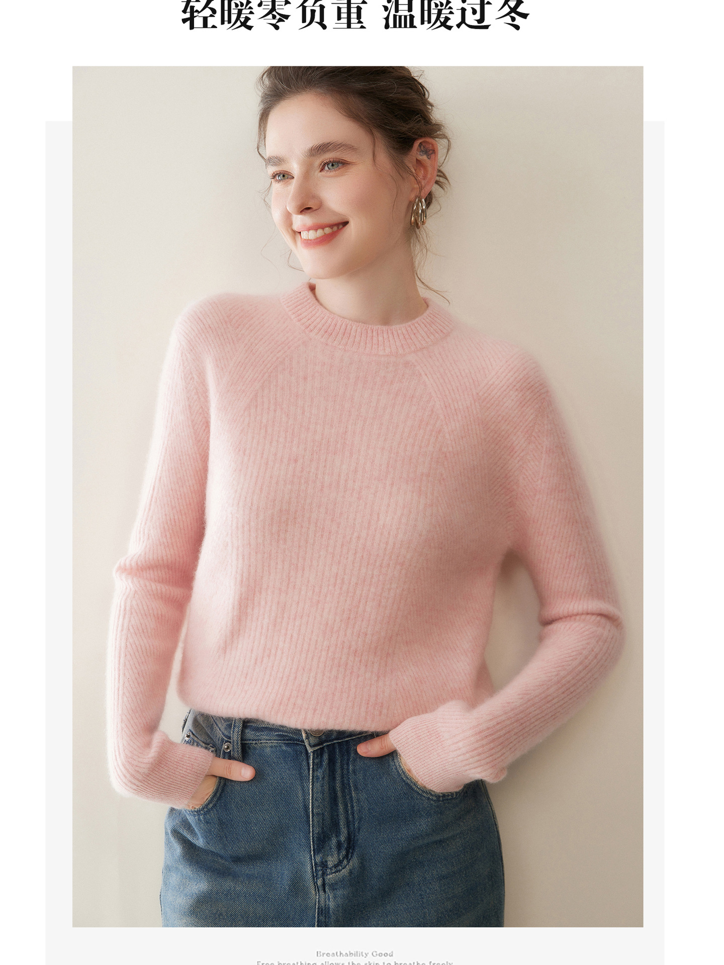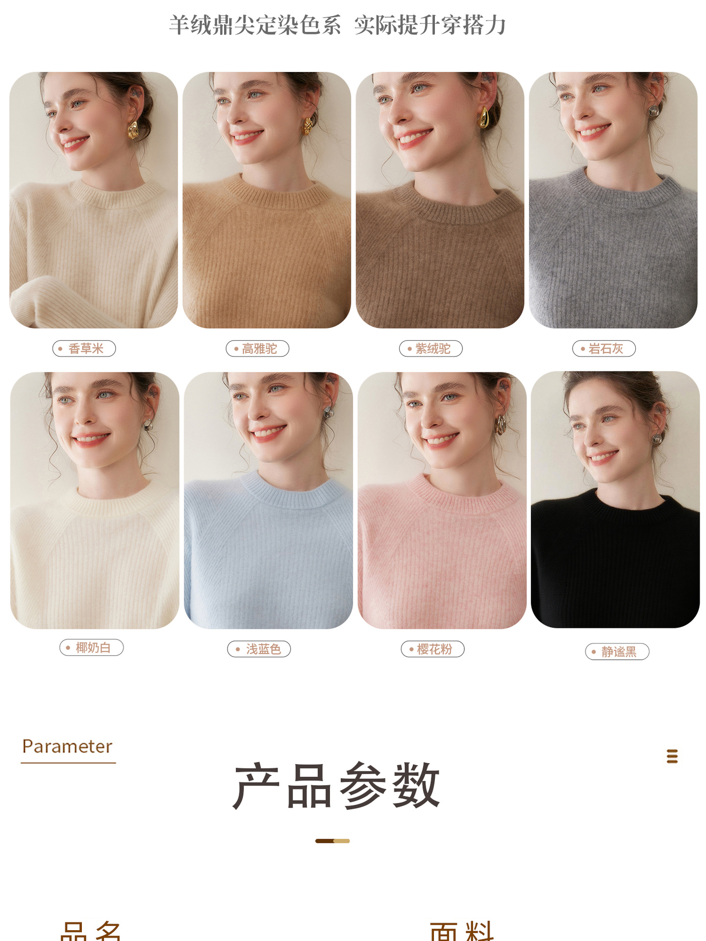 女士圆领山羊绒衫宽松显瘦打底毛衣秋冬季抽条元宝针套头针织上衣