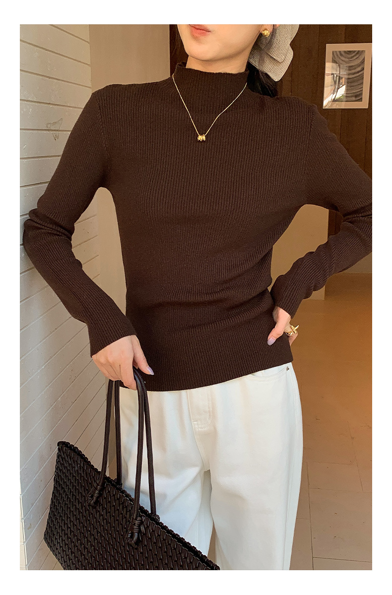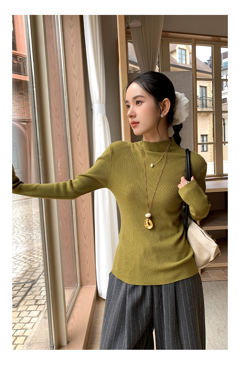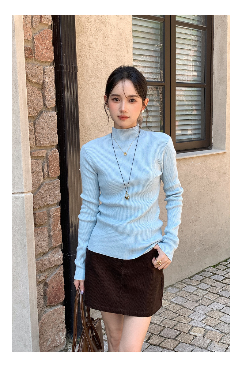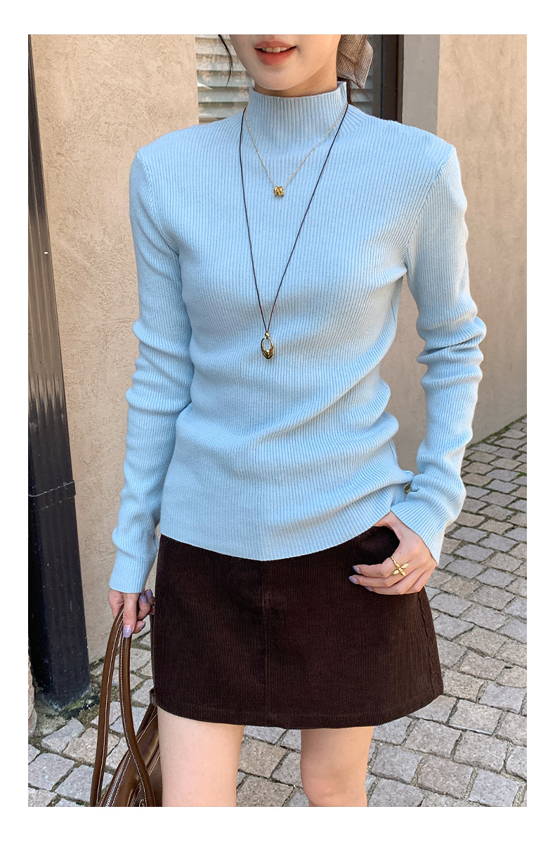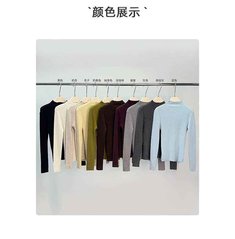 衣尔衫 超推荐 10色半高领百搭打底针织衫女坑纹T恤叠穿上衣0597