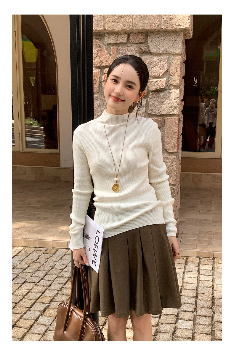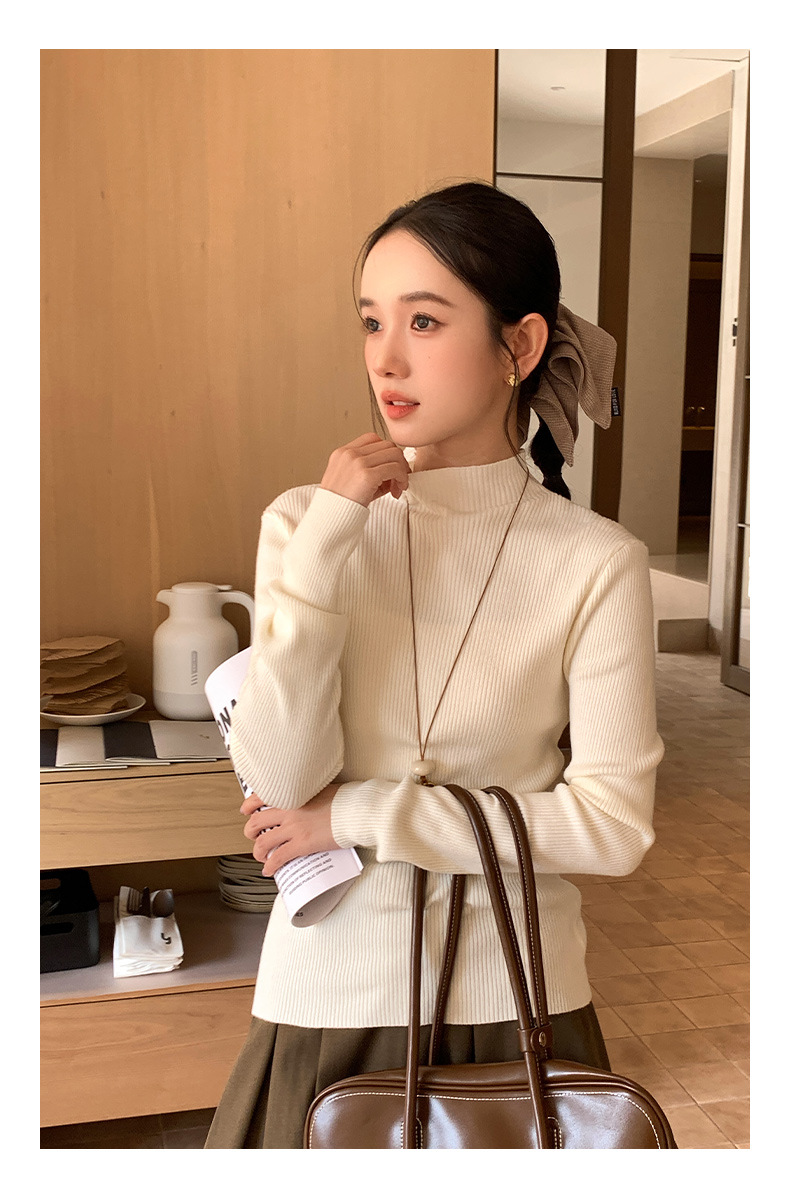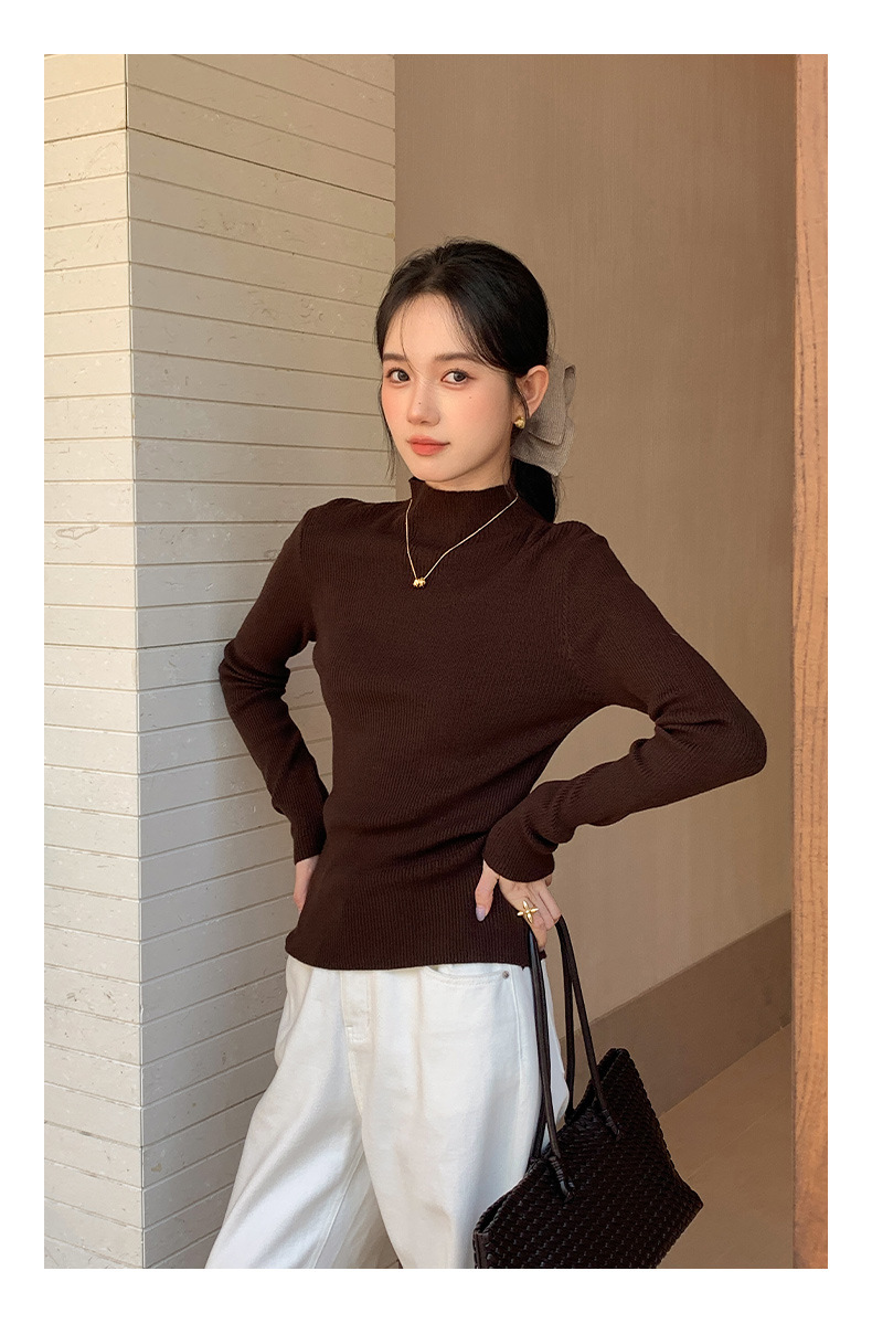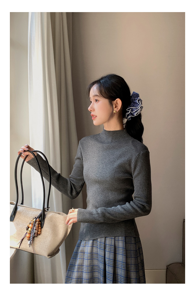 衣尔衫 超推荐 10色半高领百搭打底针织衫女坑纹T恤叠穿上衣0597