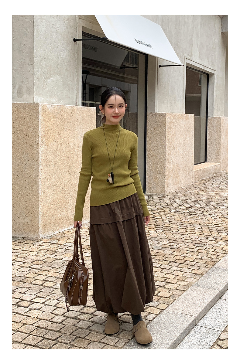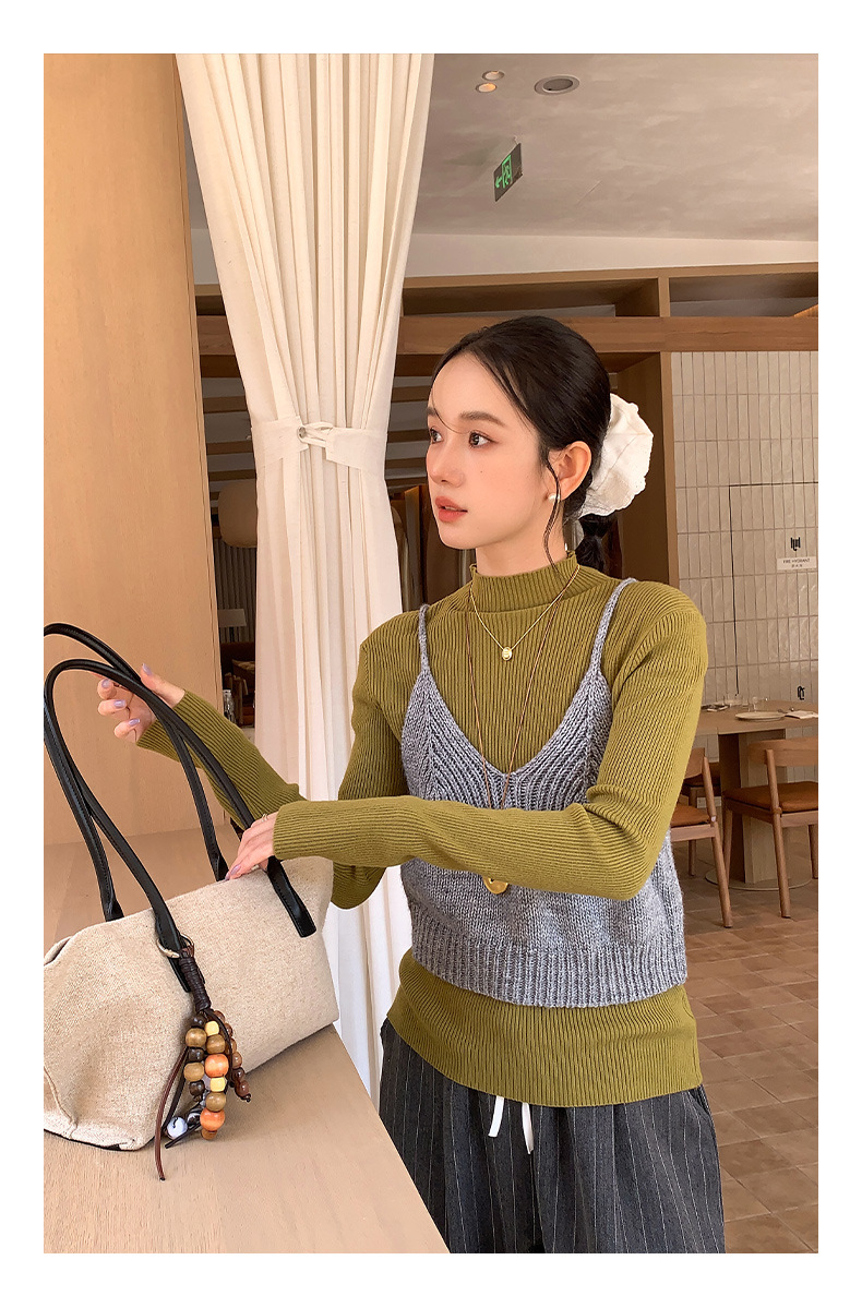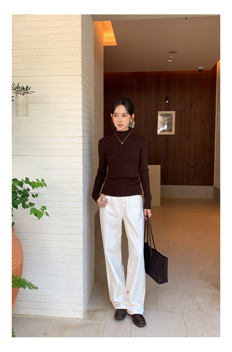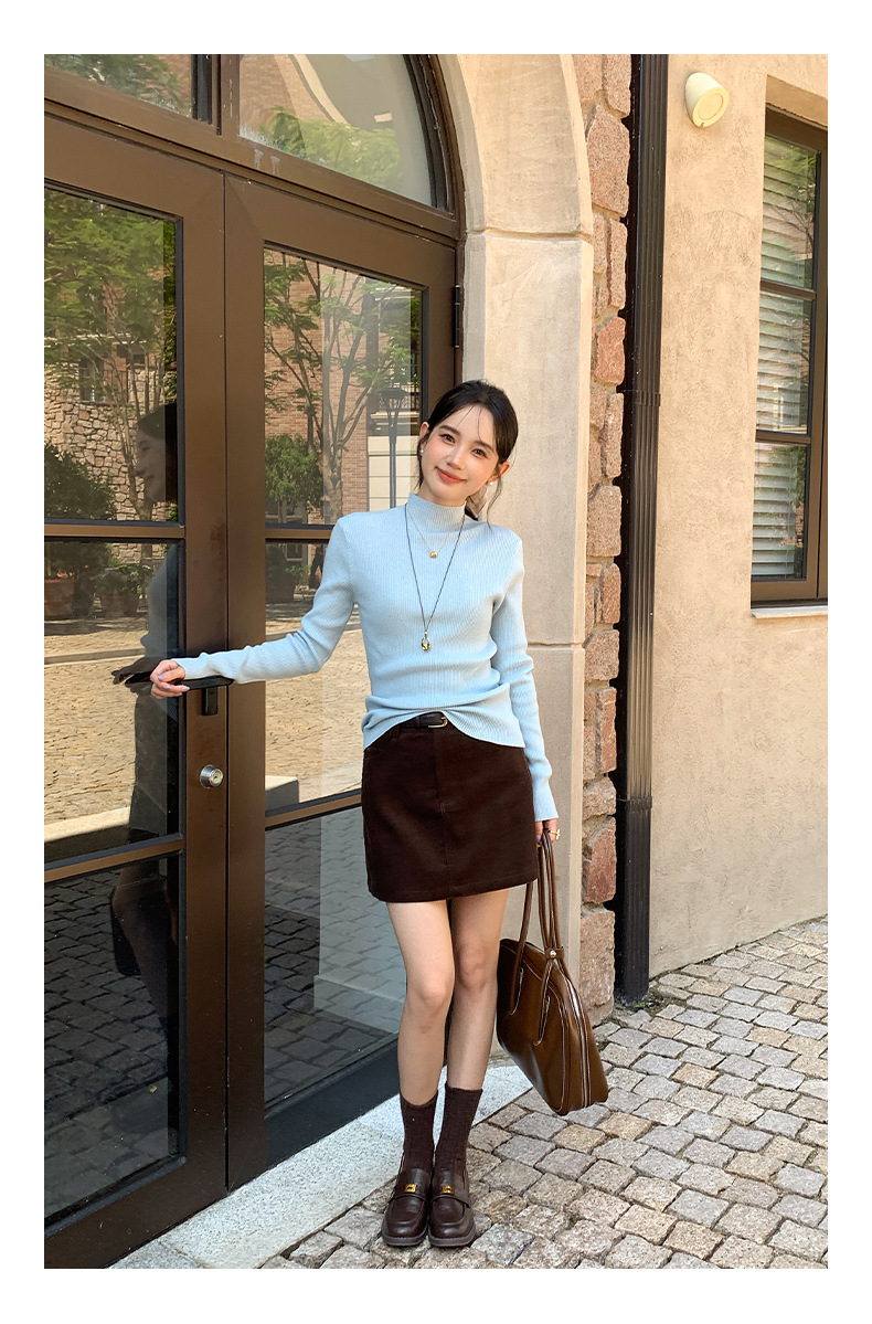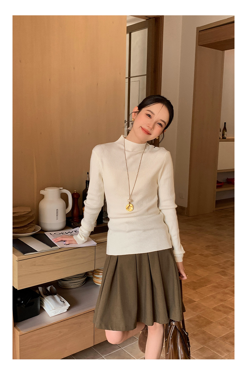 衣尔衫 超推荐 10色半高领百搭打底针织衫女坑纹T恤叠穿上衣0597