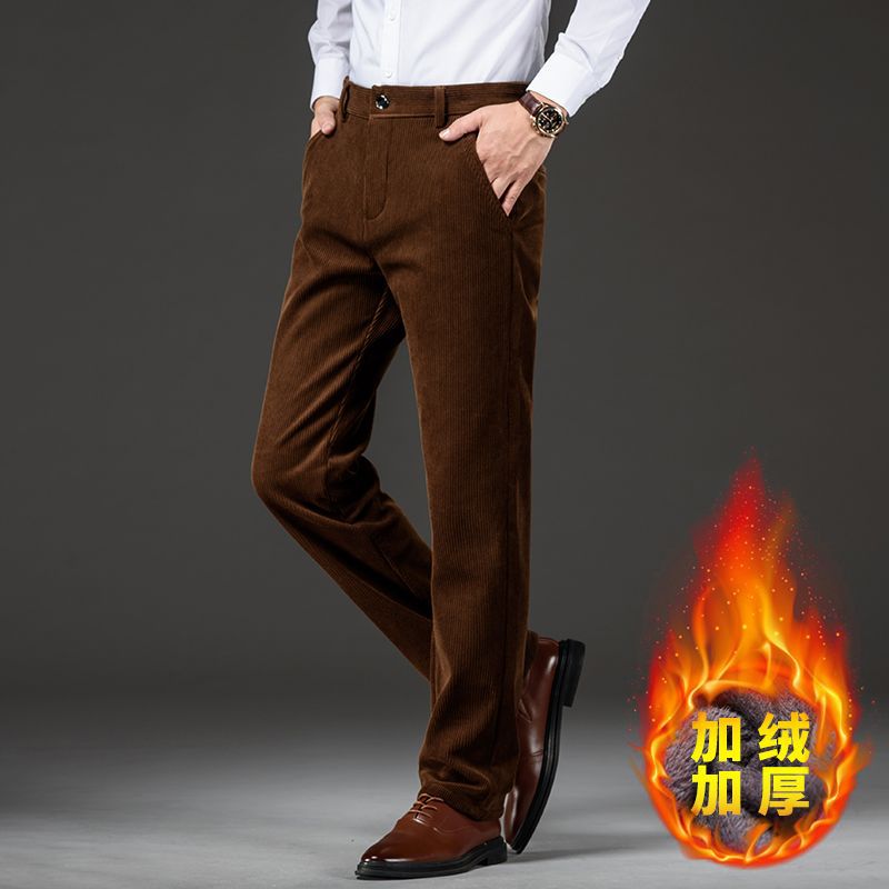 灯芯绒男裤秋冬款加绒保暖休闲裤男爸爸裤子冬季中年男士加厚长裤