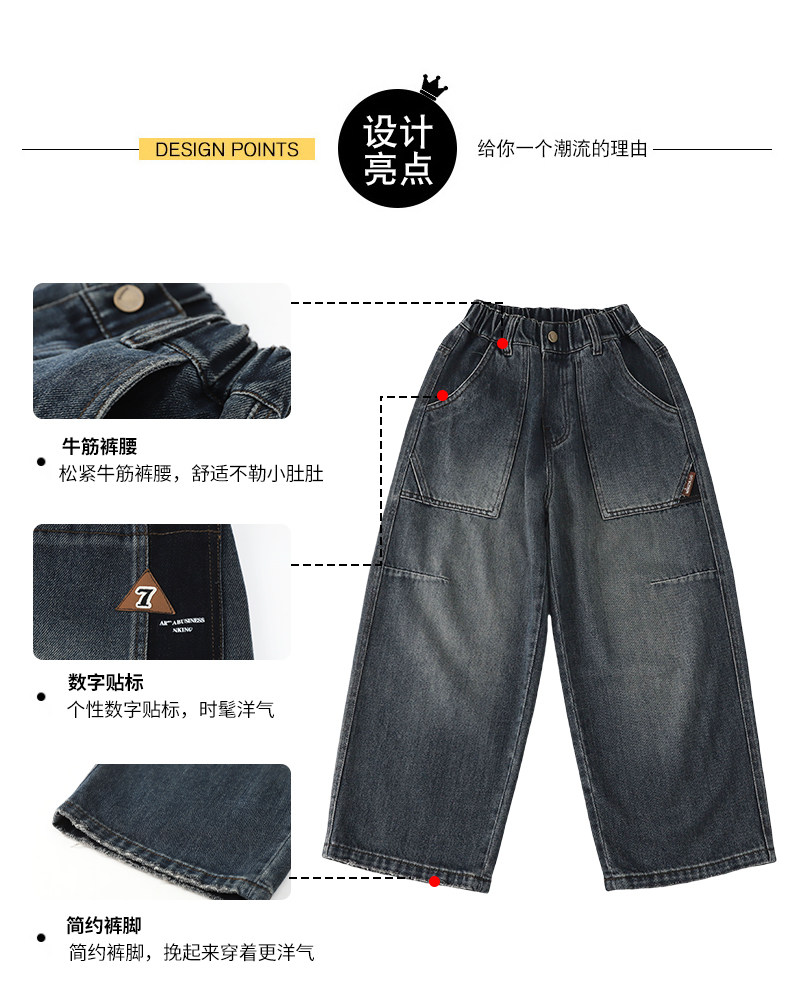 男童春秋冬裤子加绒牛仔裤5新男孩冬季加厚休闲裤儿童冬装