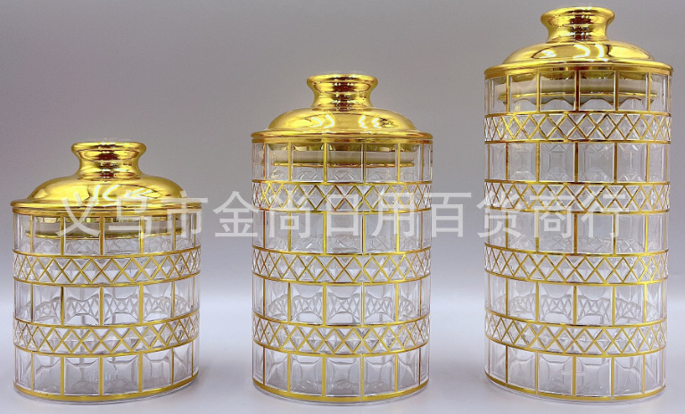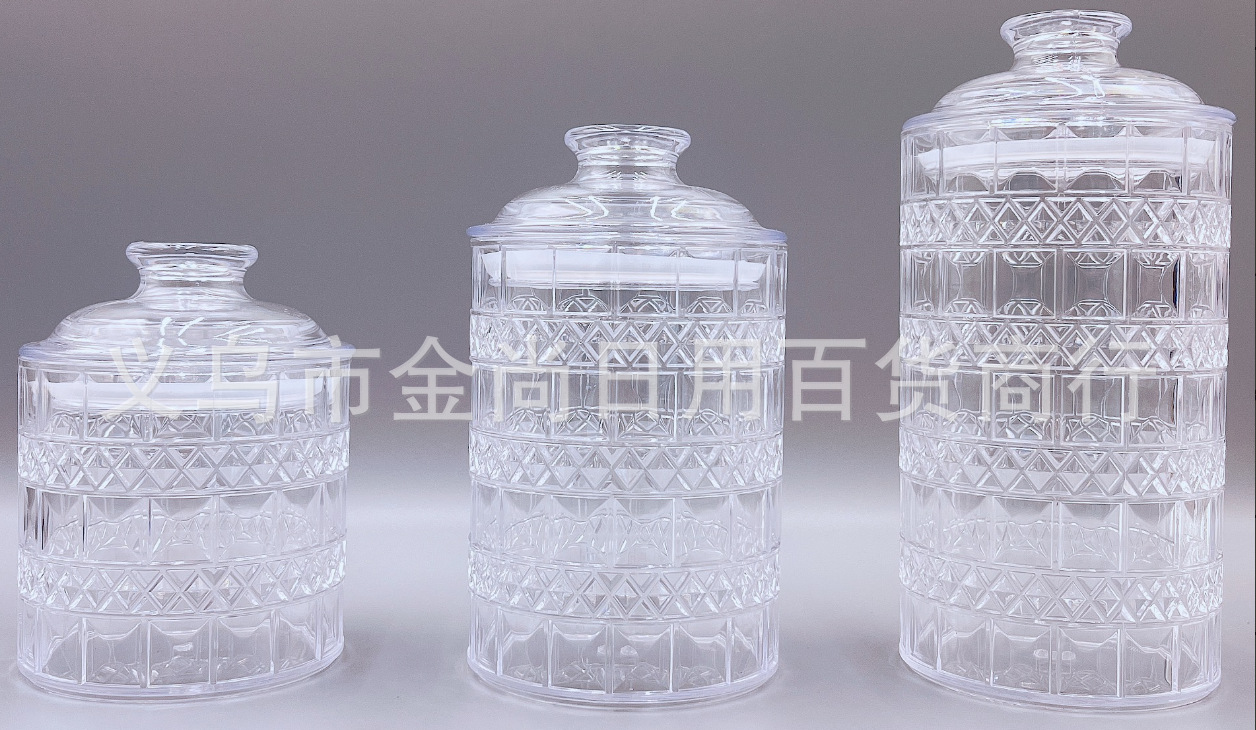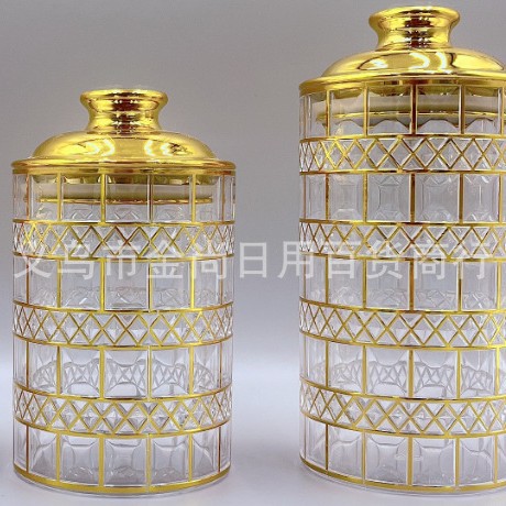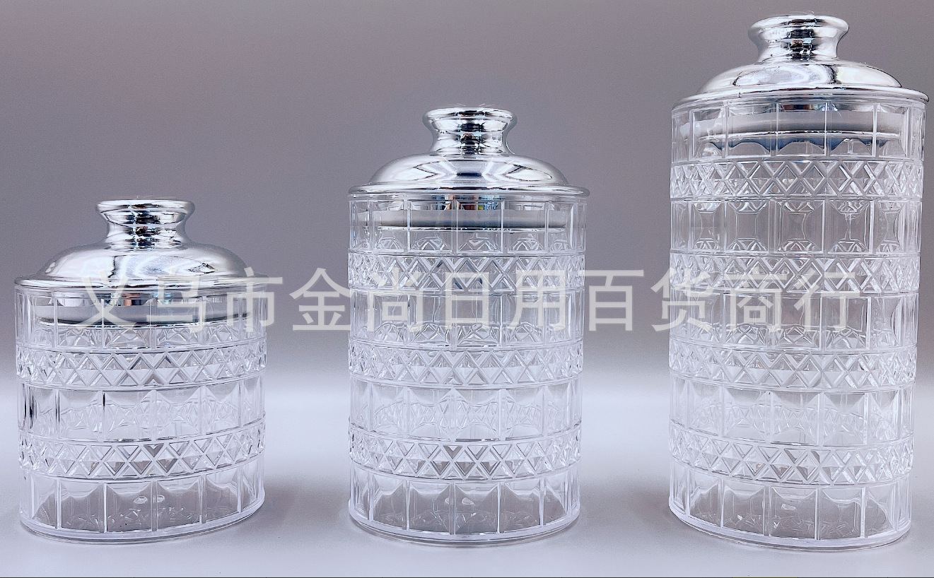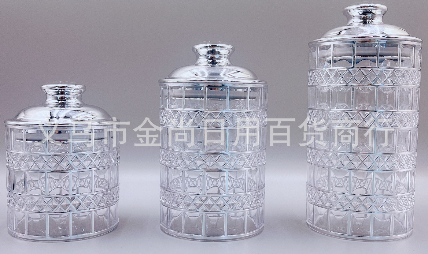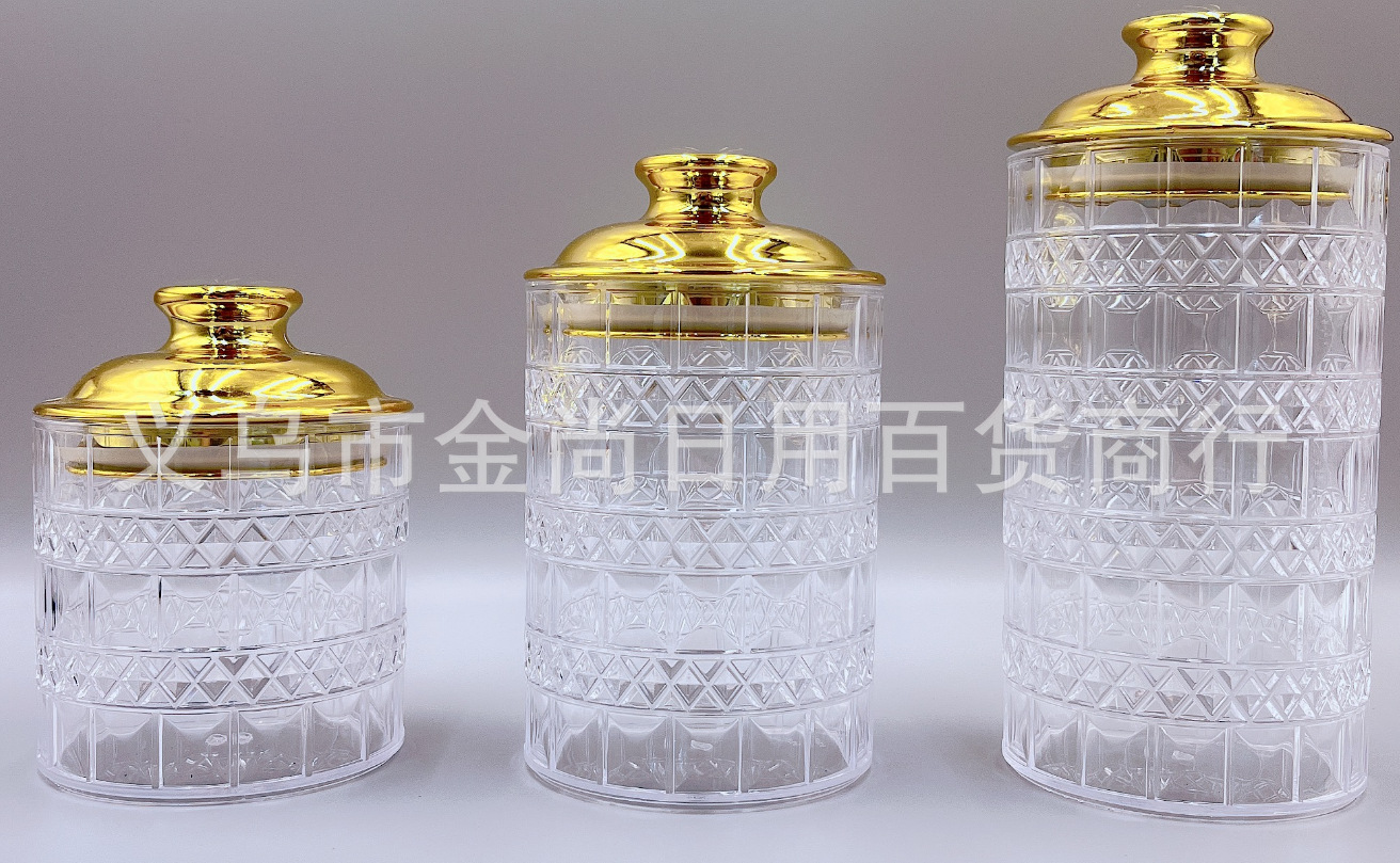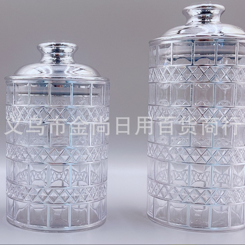 跨境金色银色透明色提手圆形花纹储物罐红糖罐食品级密封罐咖啡罐