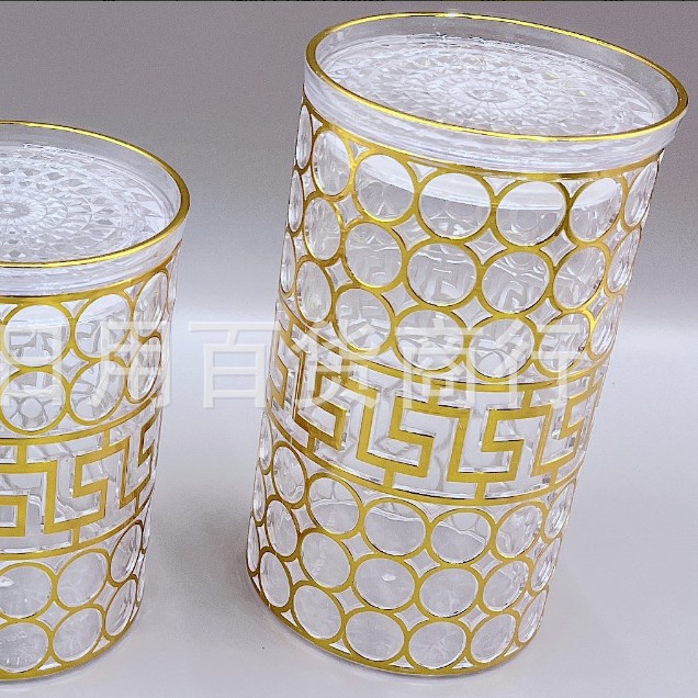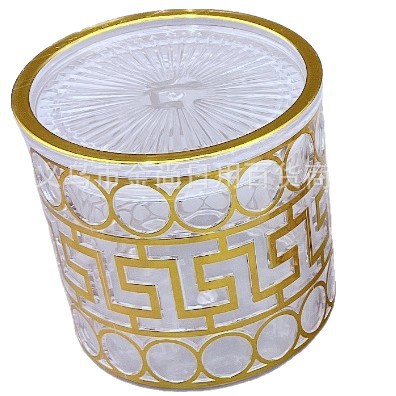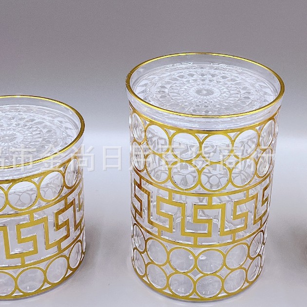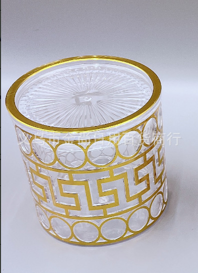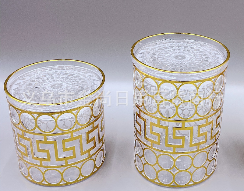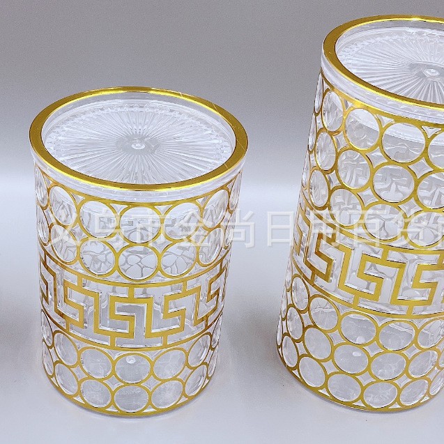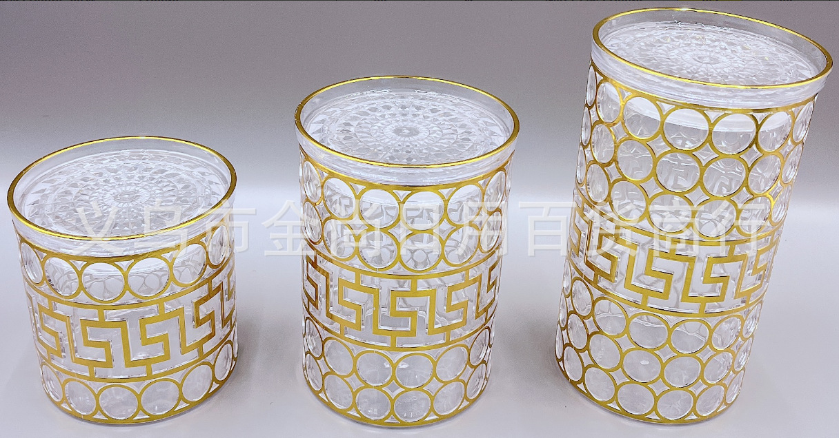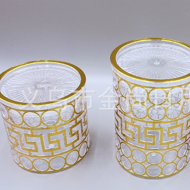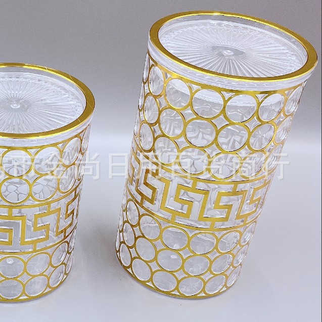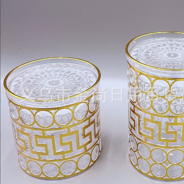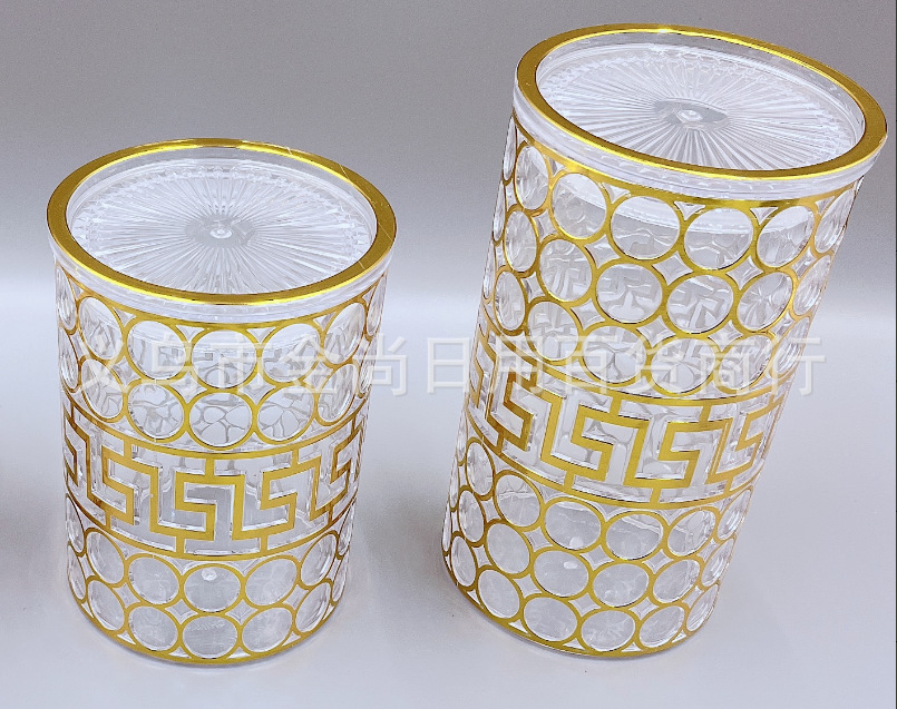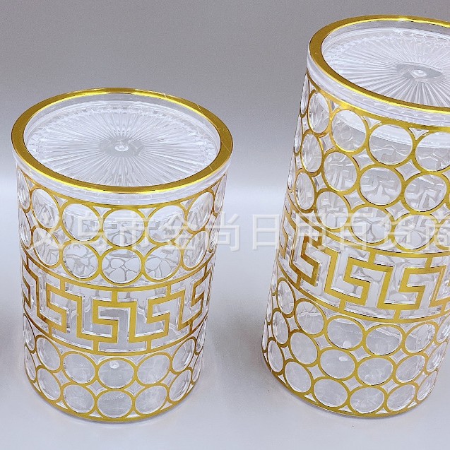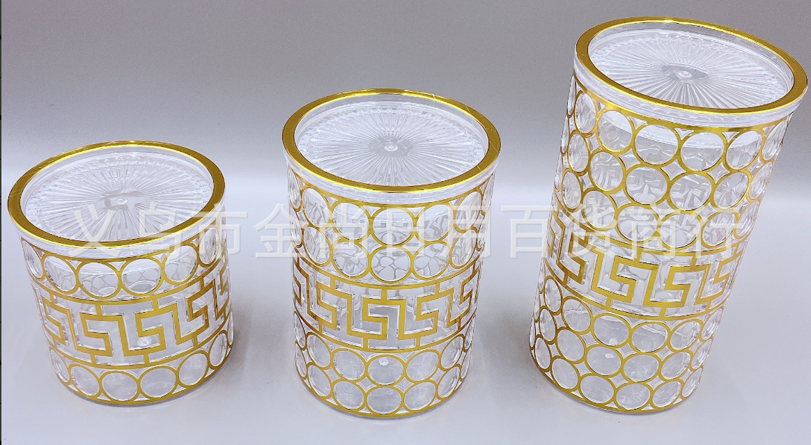 欧式金边塑料储物罐客厅厨房糖果密封罐桌面摆设花纹圆形密封罐