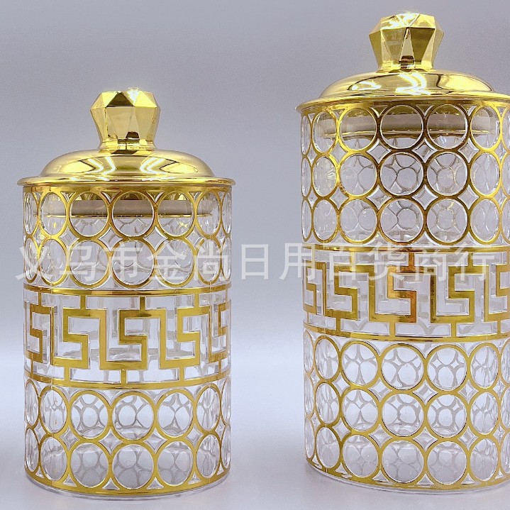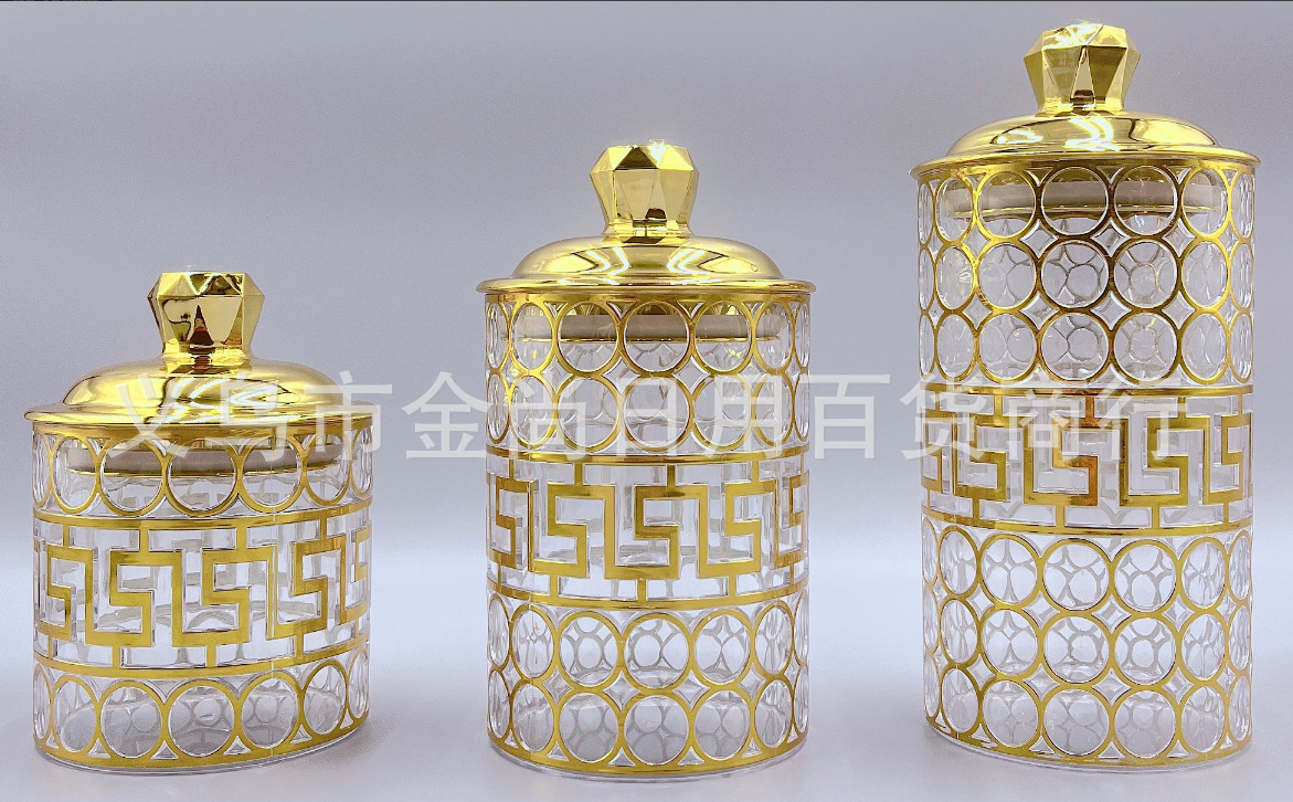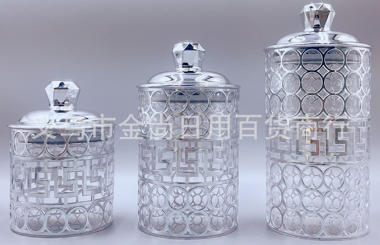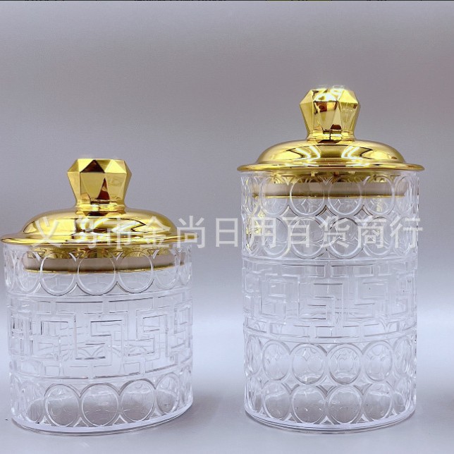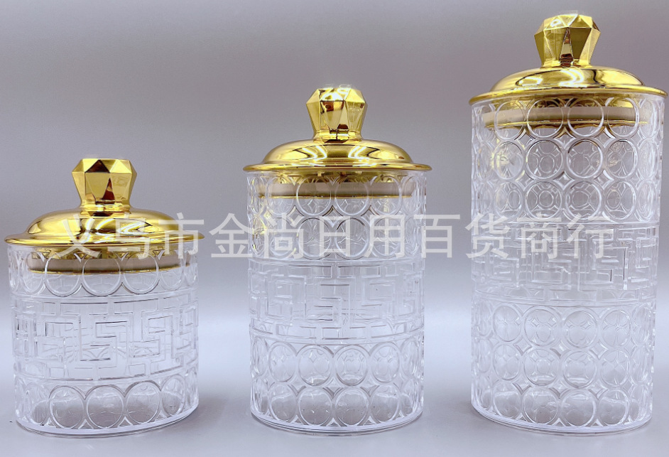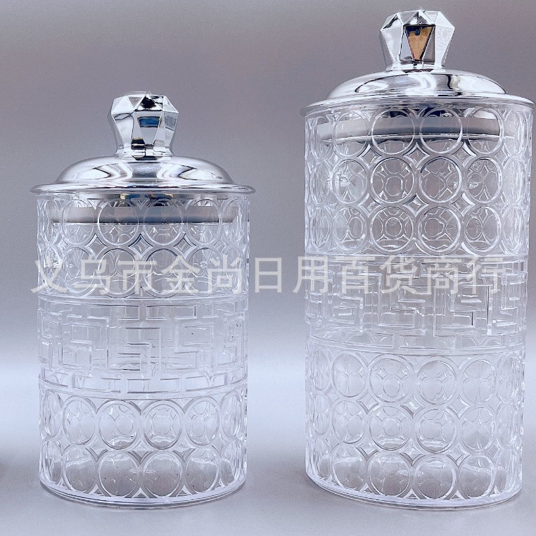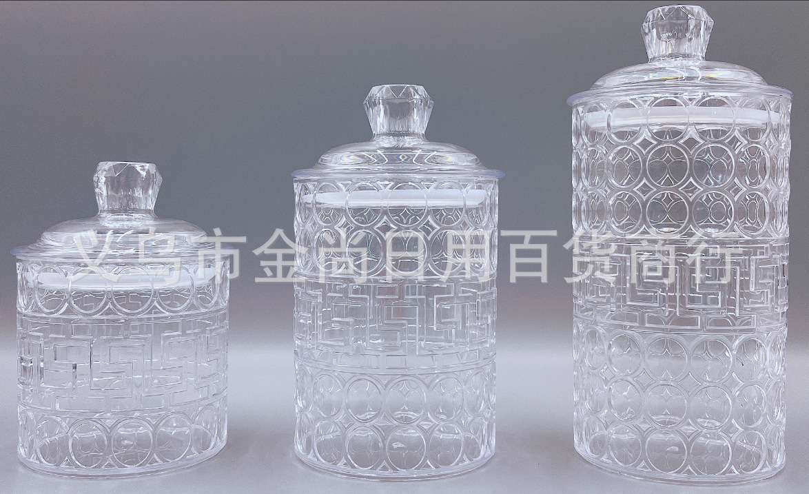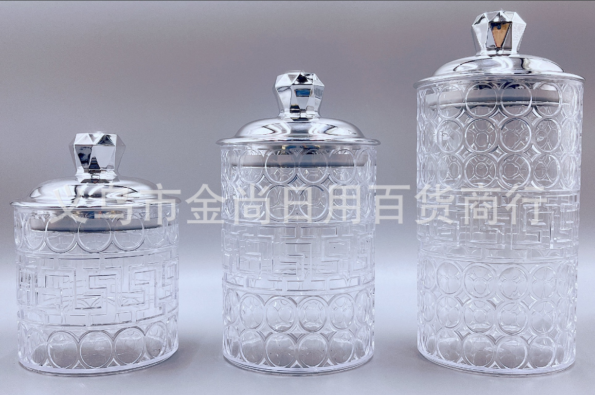欧式透明塑料花纹收纳盒桌面糖果密封罐大中小圆形收纳罐三件套