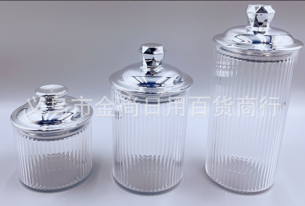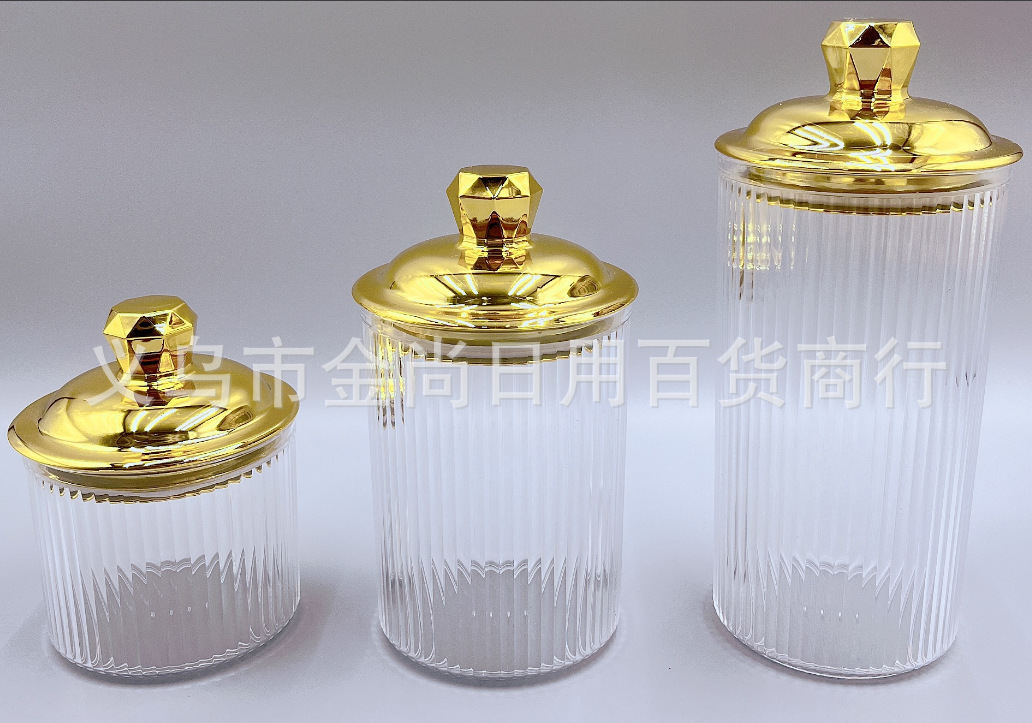 新款透明金色银色塑料砖石竖条纹储物罐糖罐婚庆罐糖果零食储物罐