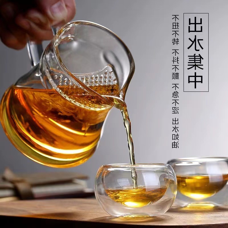 玻璃杯公道杯茶漏一体玻璃耐热分茶器套装绿茶月牙过滤泡茶公杯