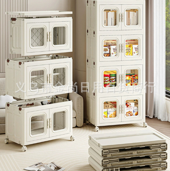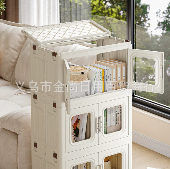 轻奢奶白翻盖折叠收纳箱宝宝衣服整理柜婴儿童塑料家用零食储物柜