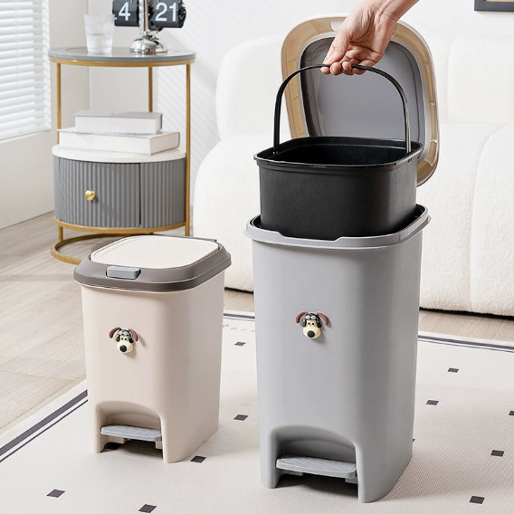 卡通小狗脚踏按压双开垃圾桶家用卧室厨房客厅垃圾桶带盖垃圾桶