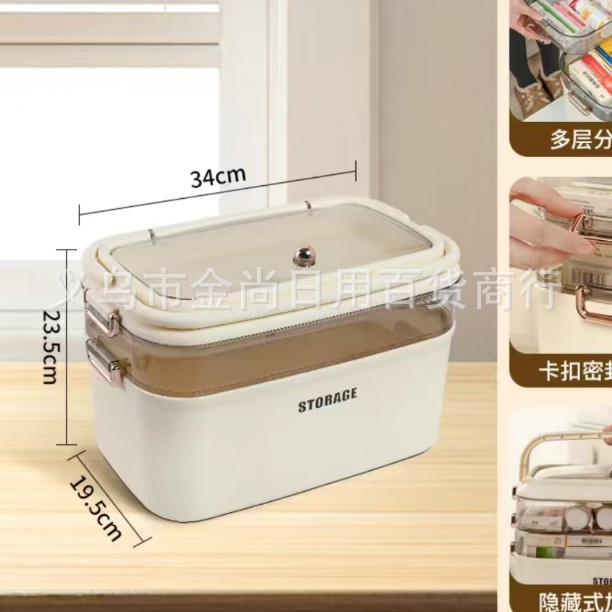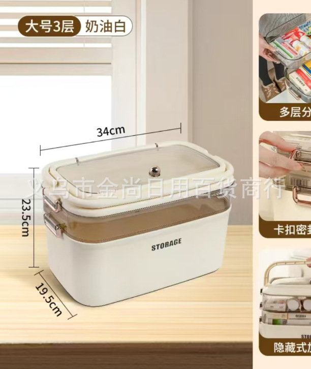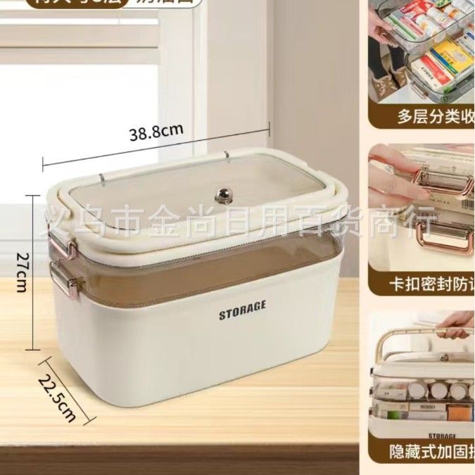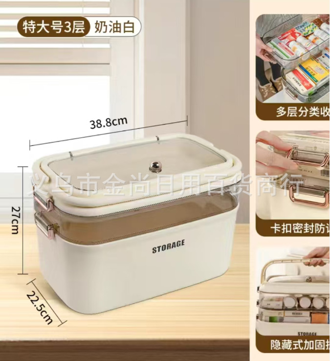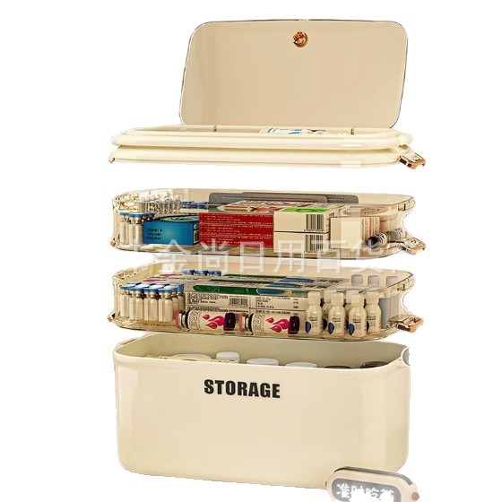 新款家用药箱家庭装大容量医药箱多层医疗急救药盒实色药箱收纳盒