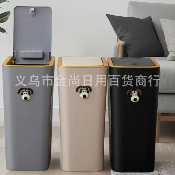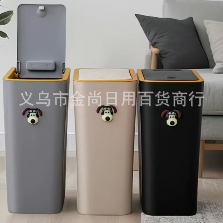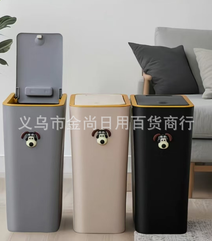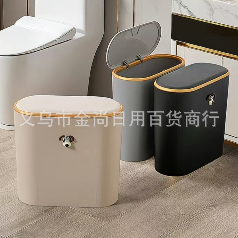 家用奶油风按压夹缝垃圾桶家用大容量厨房客厅卫生间带盖轻奢纸篓
