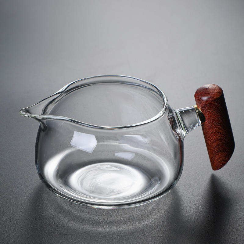 玻璃杯侧把玻璃公道杯茶海配件耐热木把公杯创意功夫茶具茶漏杯
