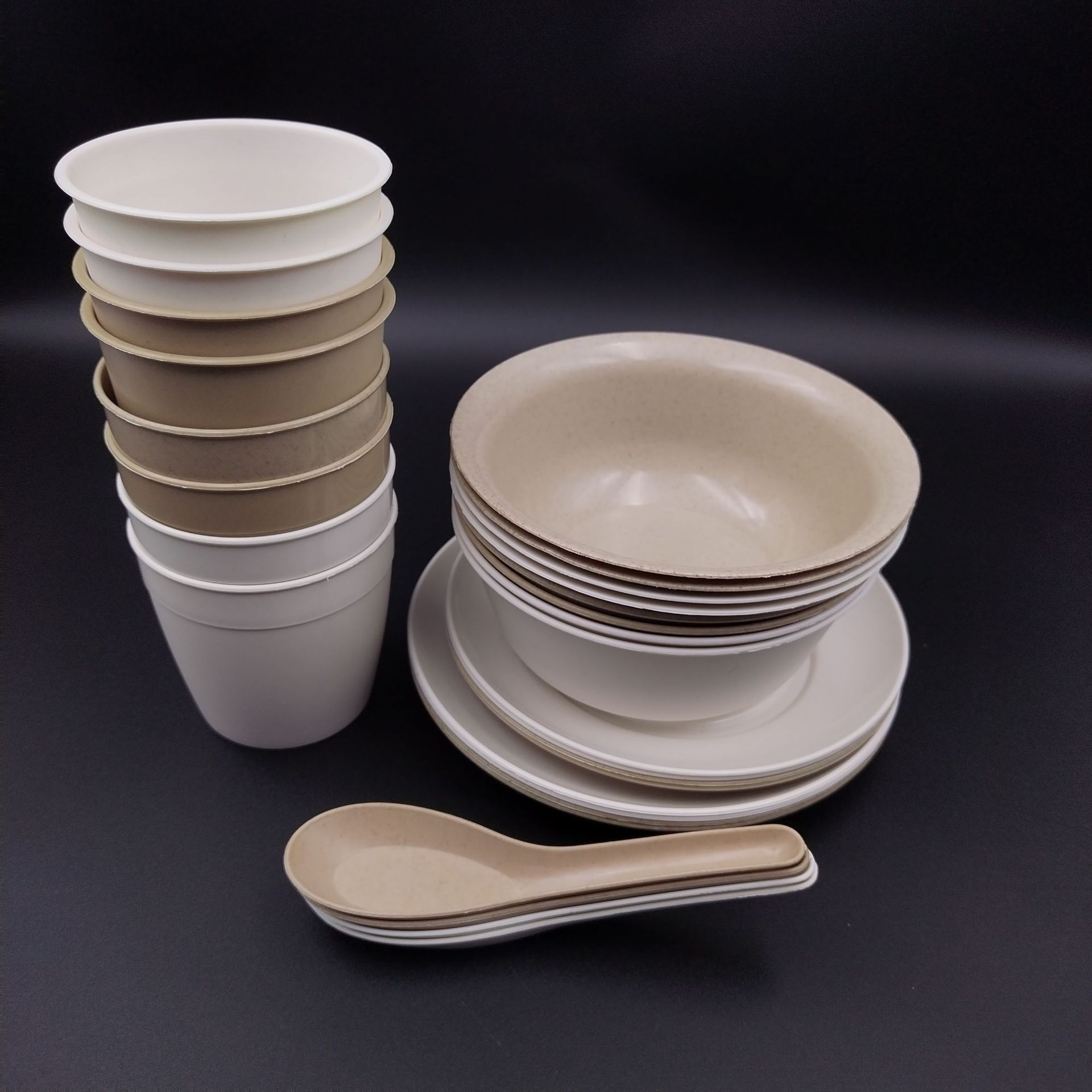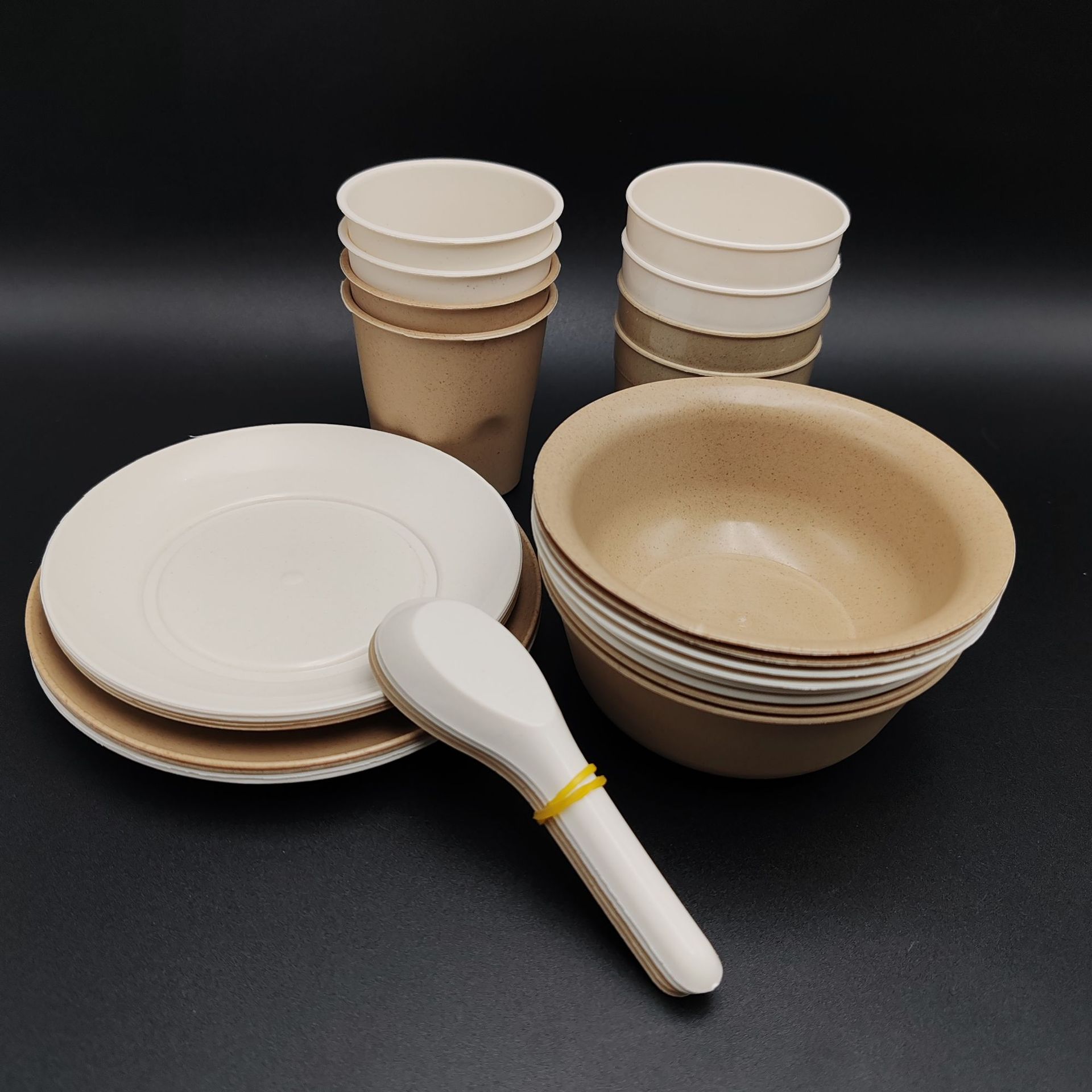 厂家【拿样】可降解稻壳餐具四件套加厚加硬碗杯碟勺套装微波环保