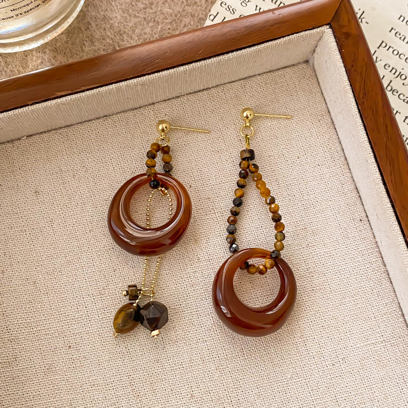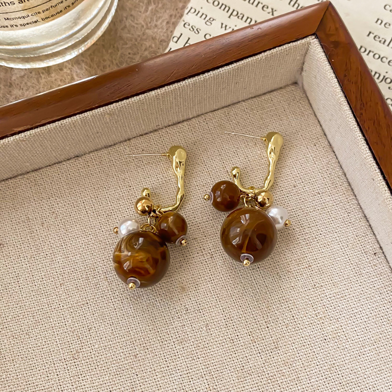 法式轻奢复古美拉德琥珀咖色耳环女气质钉小众轻奢设计高级感配饰