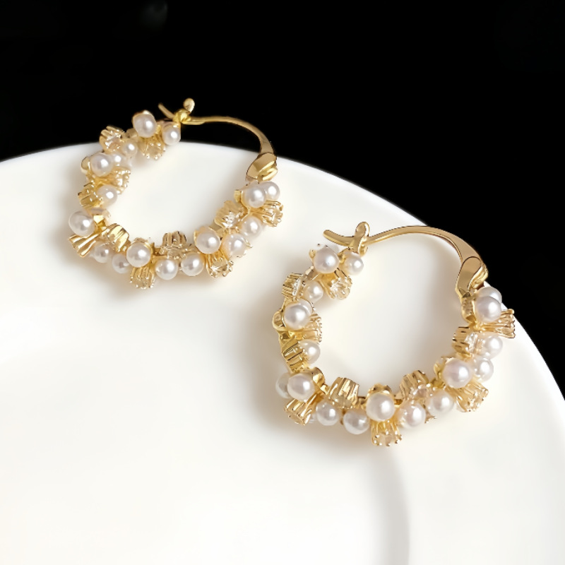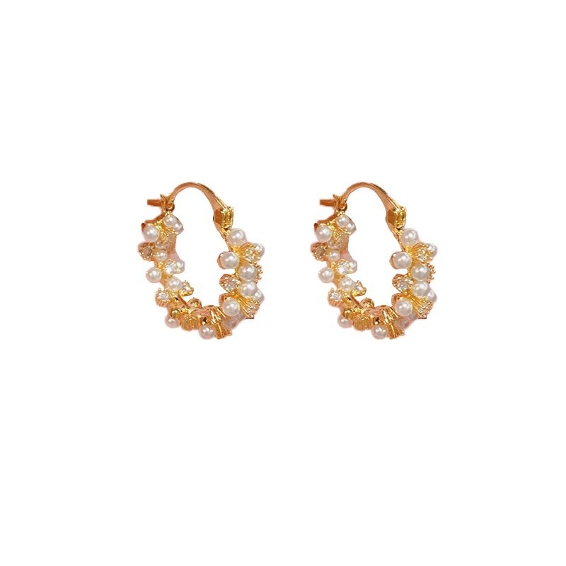 法式珍珠耳扣女轻奢高级感圈圈耳环方圆脸耳圈复古设计感气质耳饰