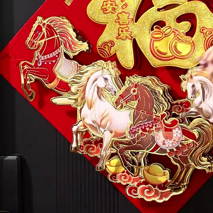 2026新款马年福字贴新年大门福字春节植绒立体过年入户门贴装饰品