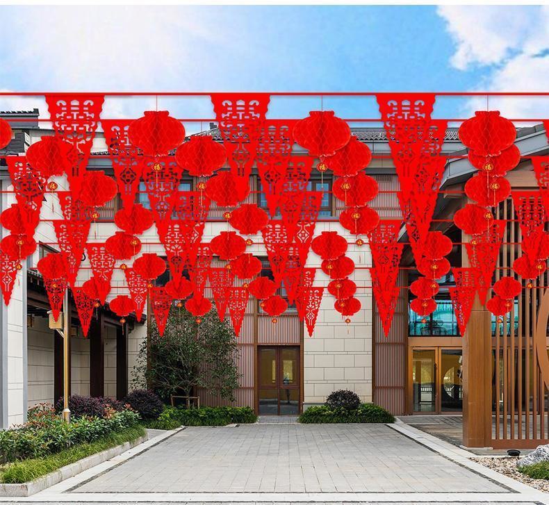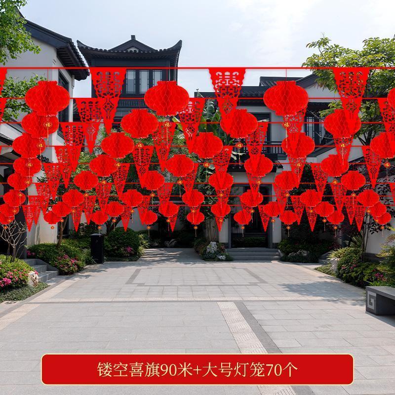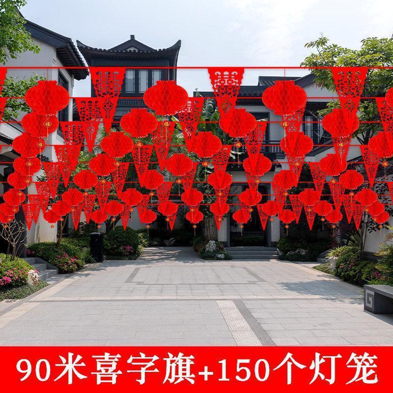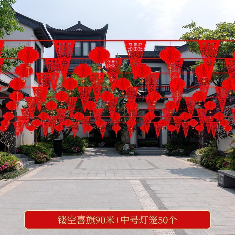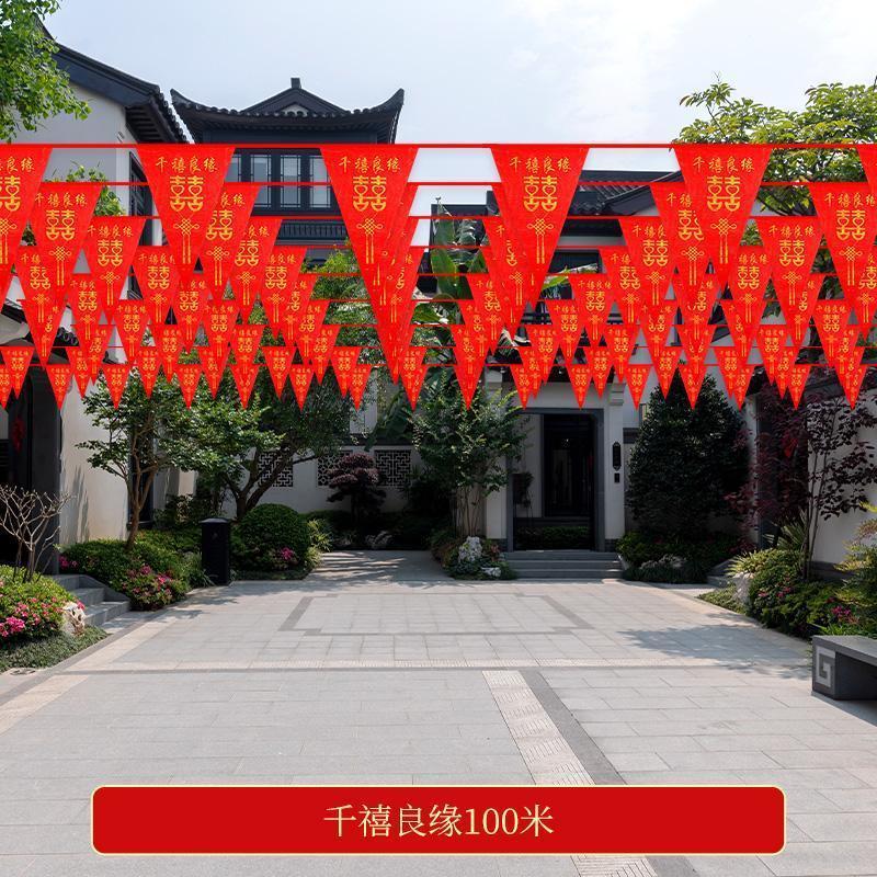 院子婚礼装饰彩旗婚庆婚房拉花结婚用品农村室外户外场景布置大全