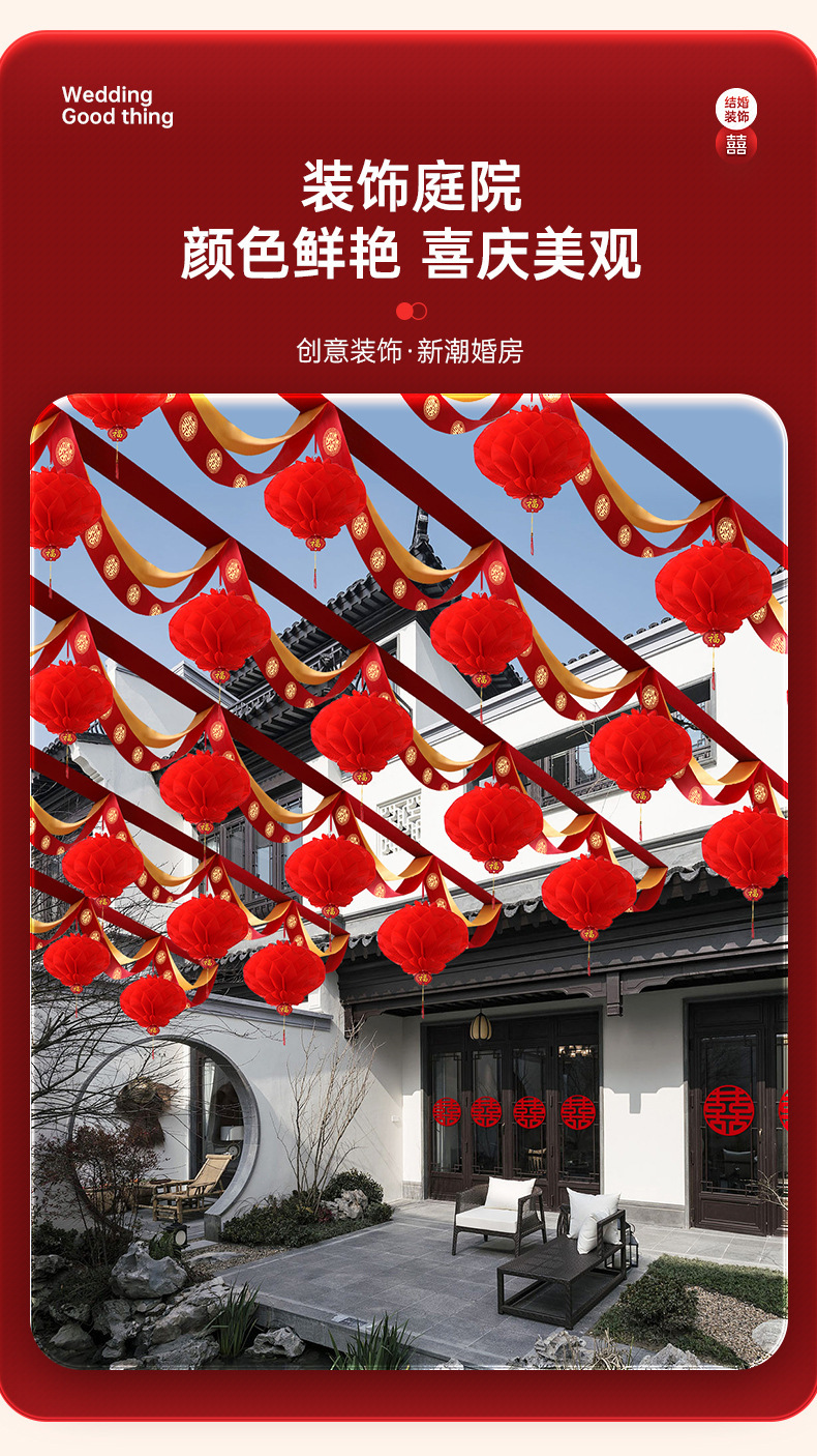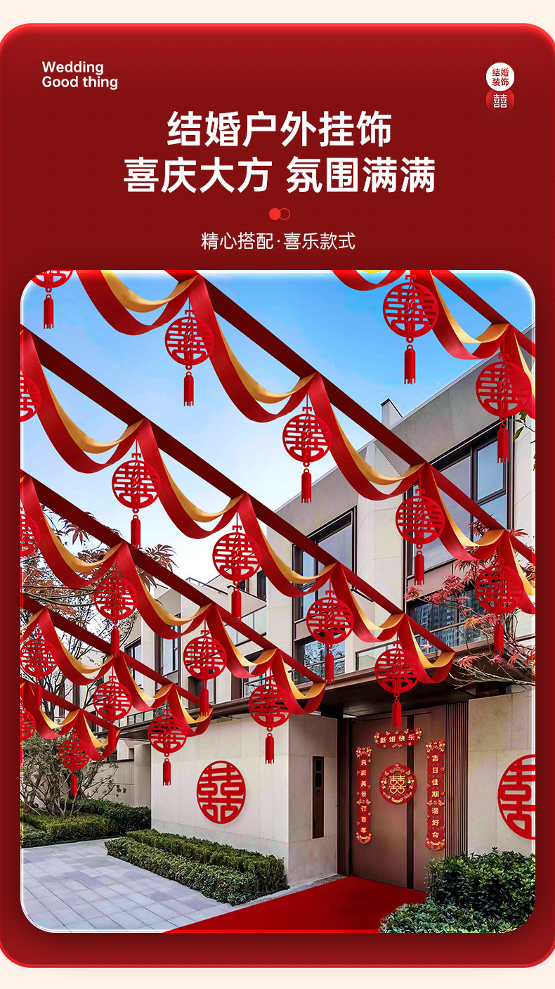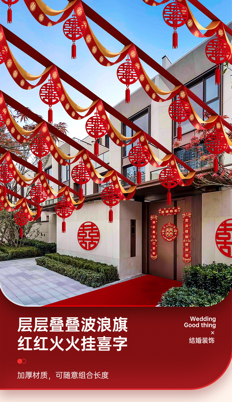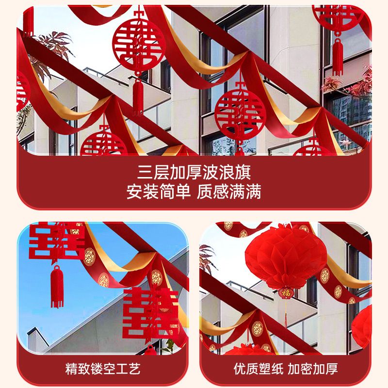 农村庭院结婚彩带拉花装饰婚礼新房彩条彩旗场景布置婚庆用品批发