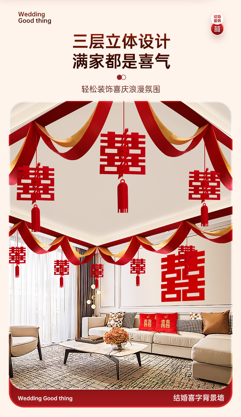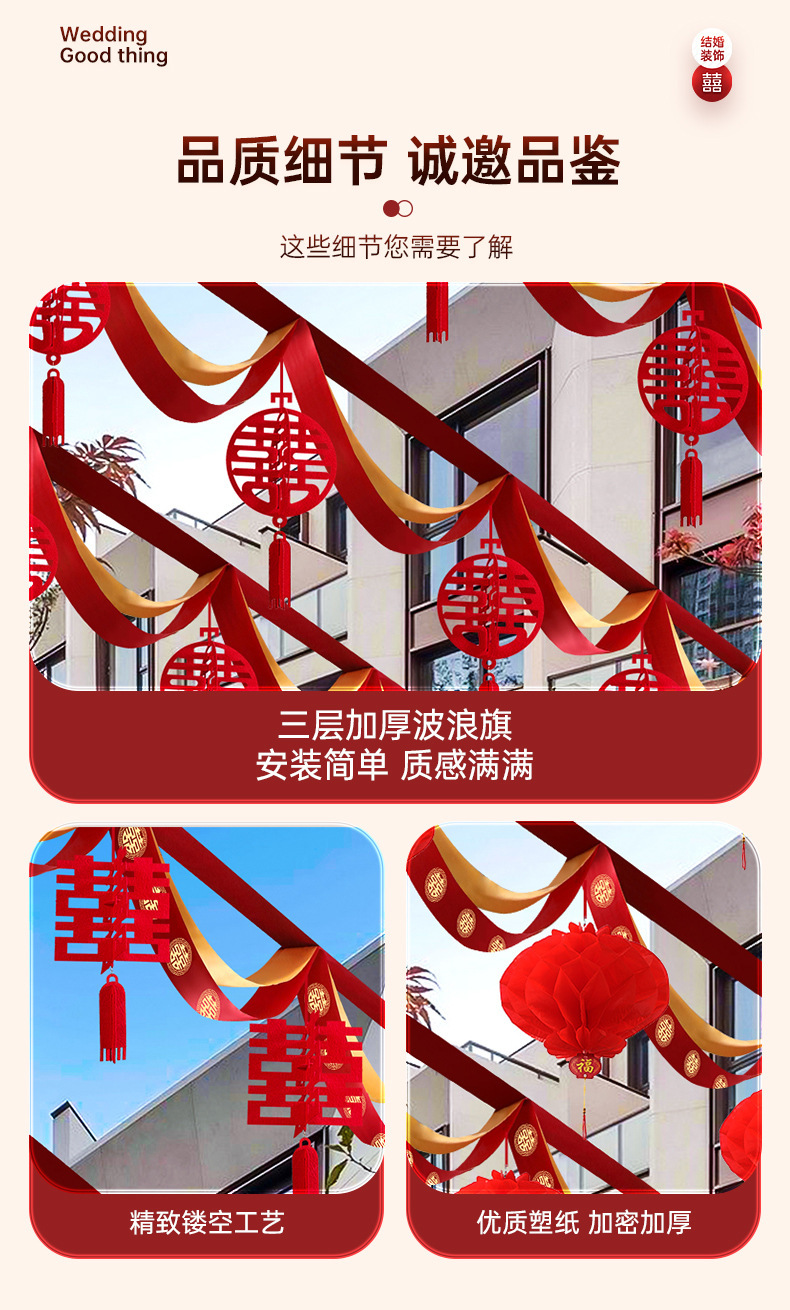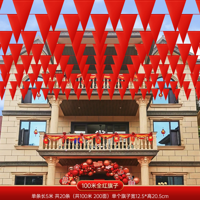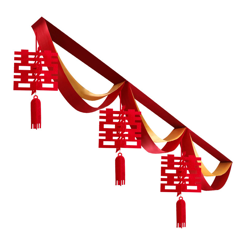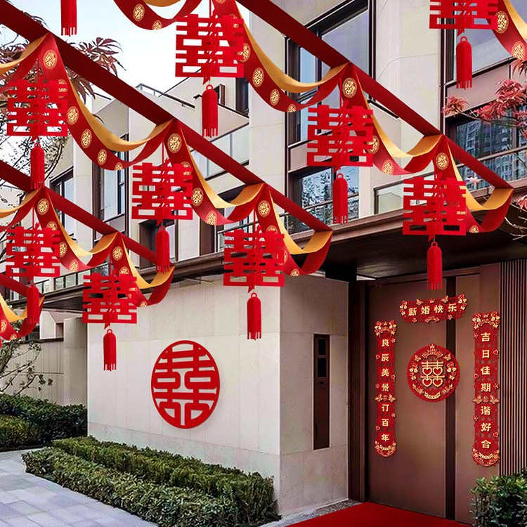农村庭院结婚彩带拉花装饰婚礼新房彩条彩旗场景布置婚庆用品批发