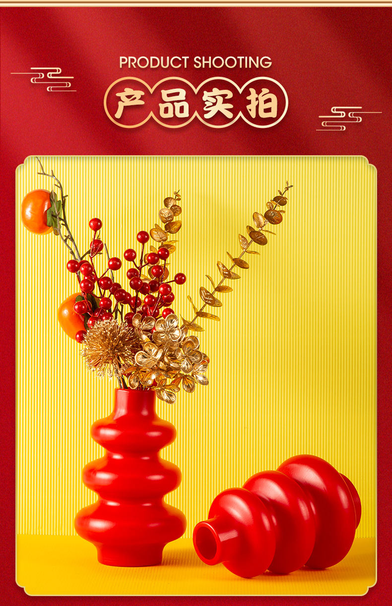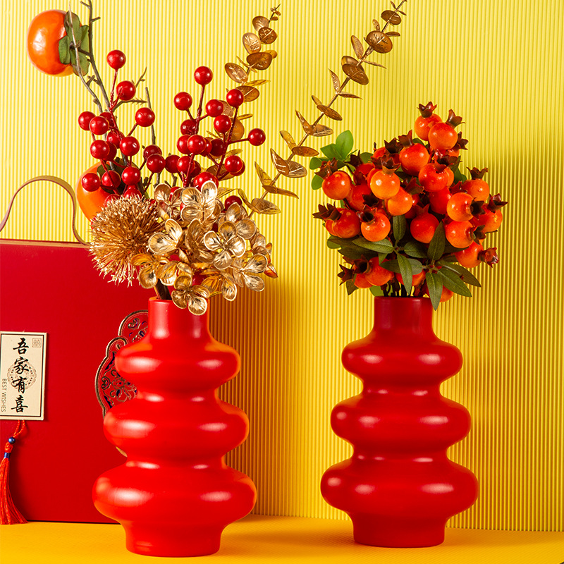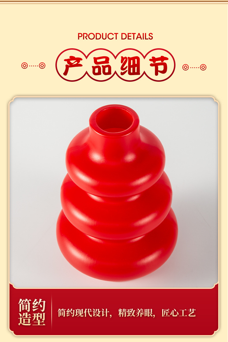 厂家批发仿陶瓷塑料花瓶葫芦形状装饰摆件仿真假花插花瓶可蓄水