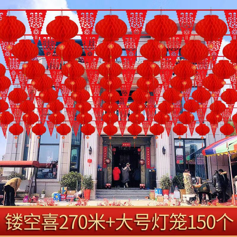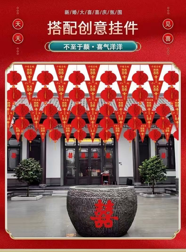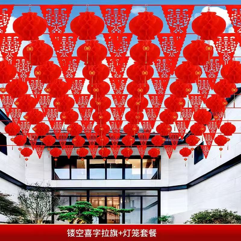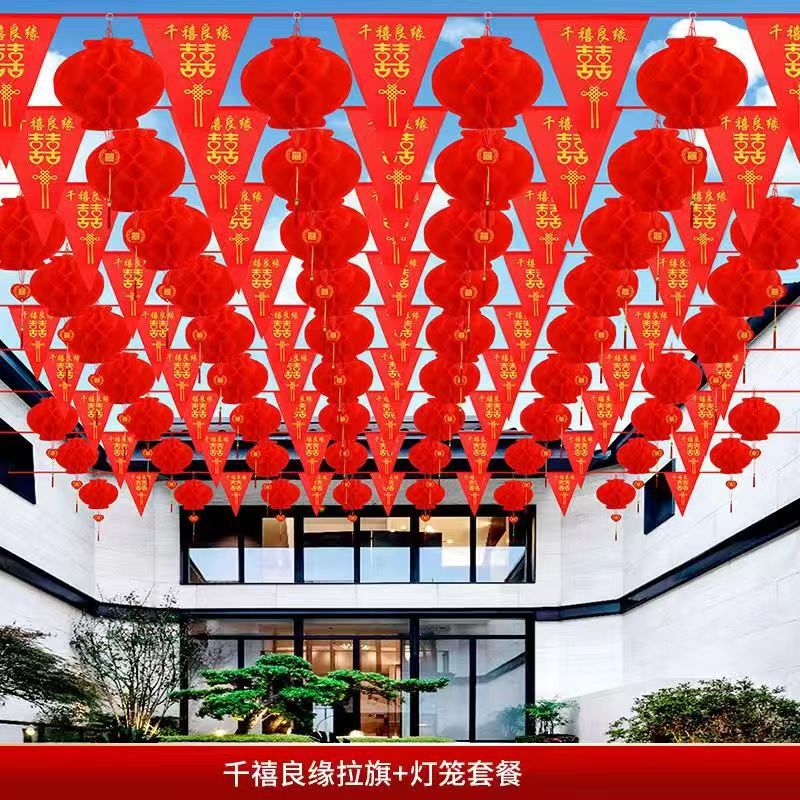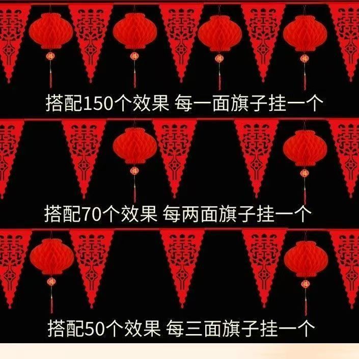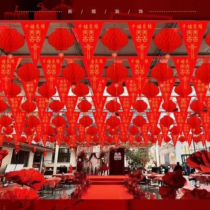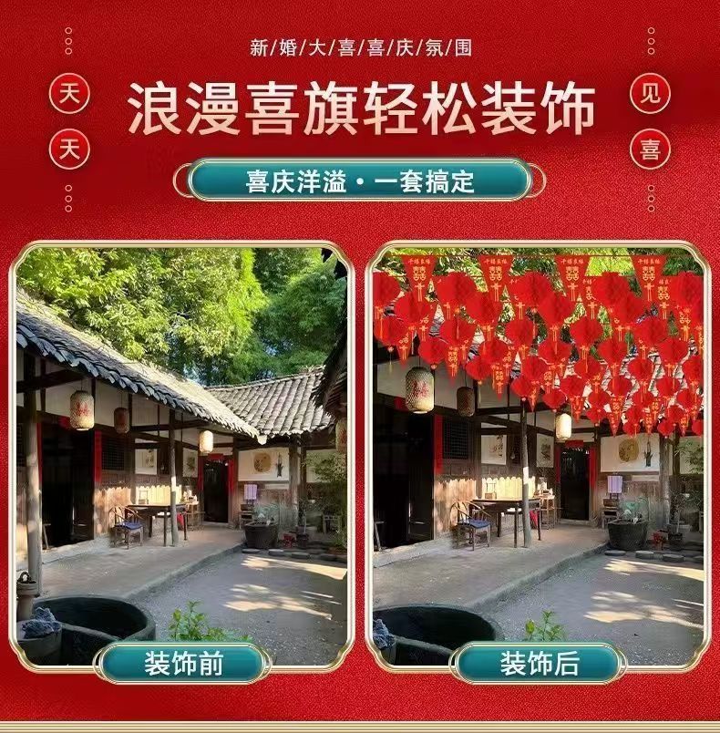 结婚五彩串旗结婚彩旗院子拉花喜庆装饰场景布置结婚装饰室外院子