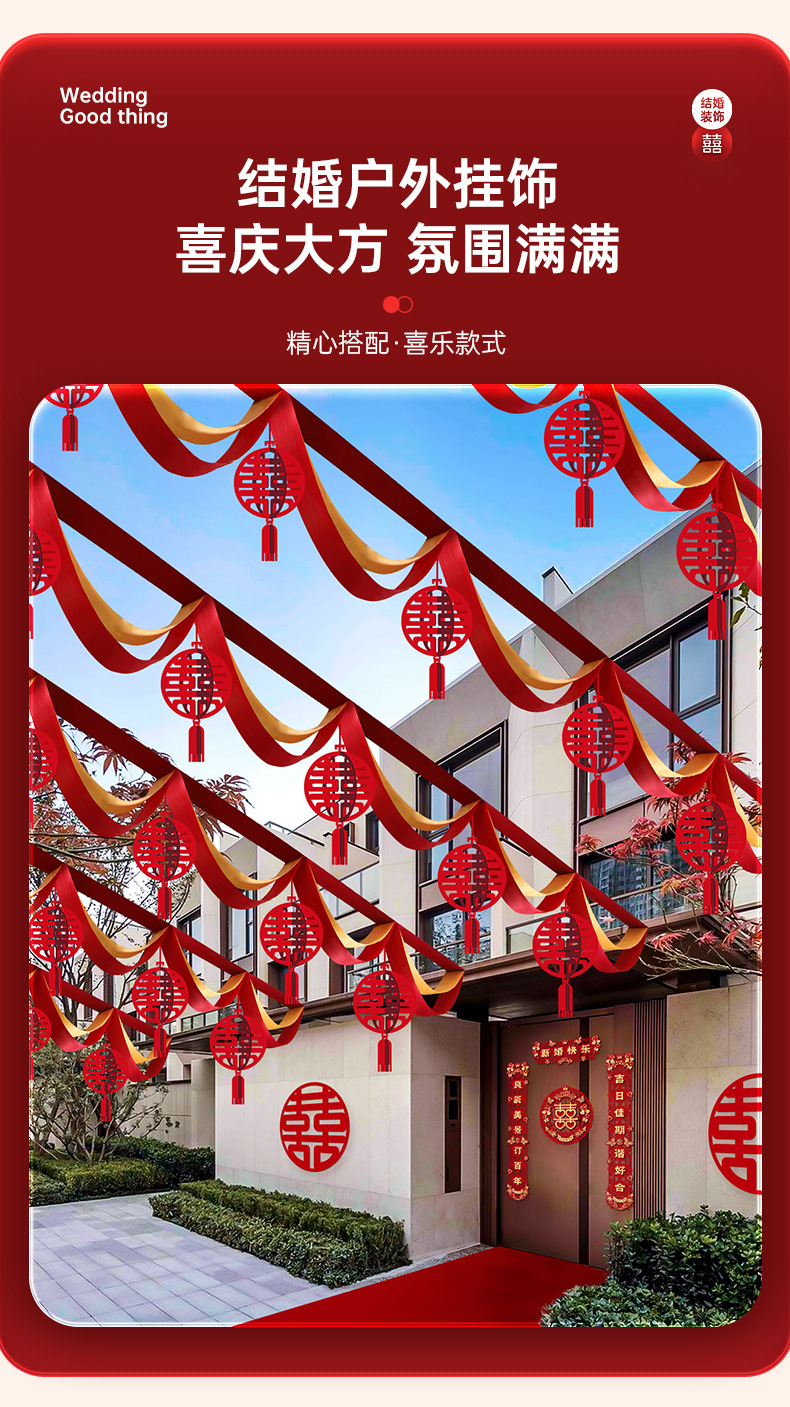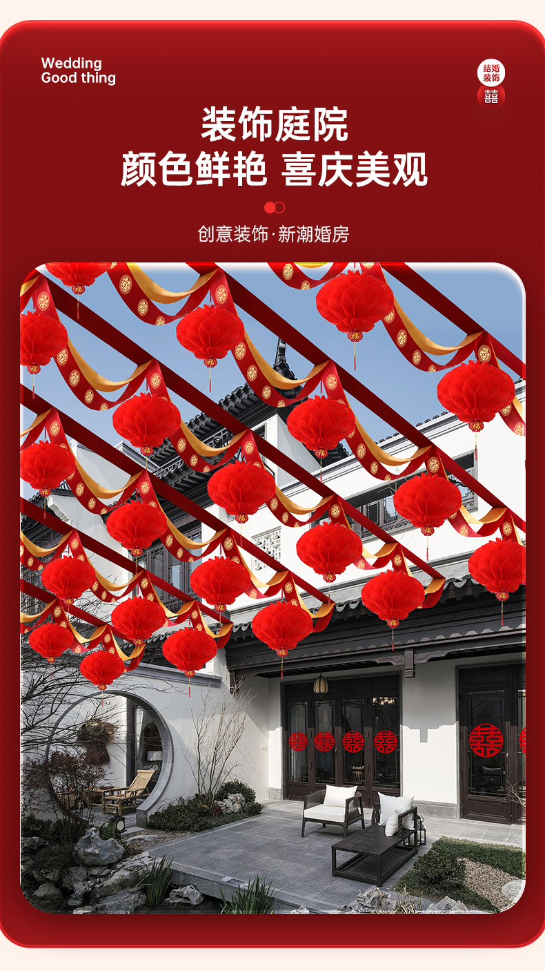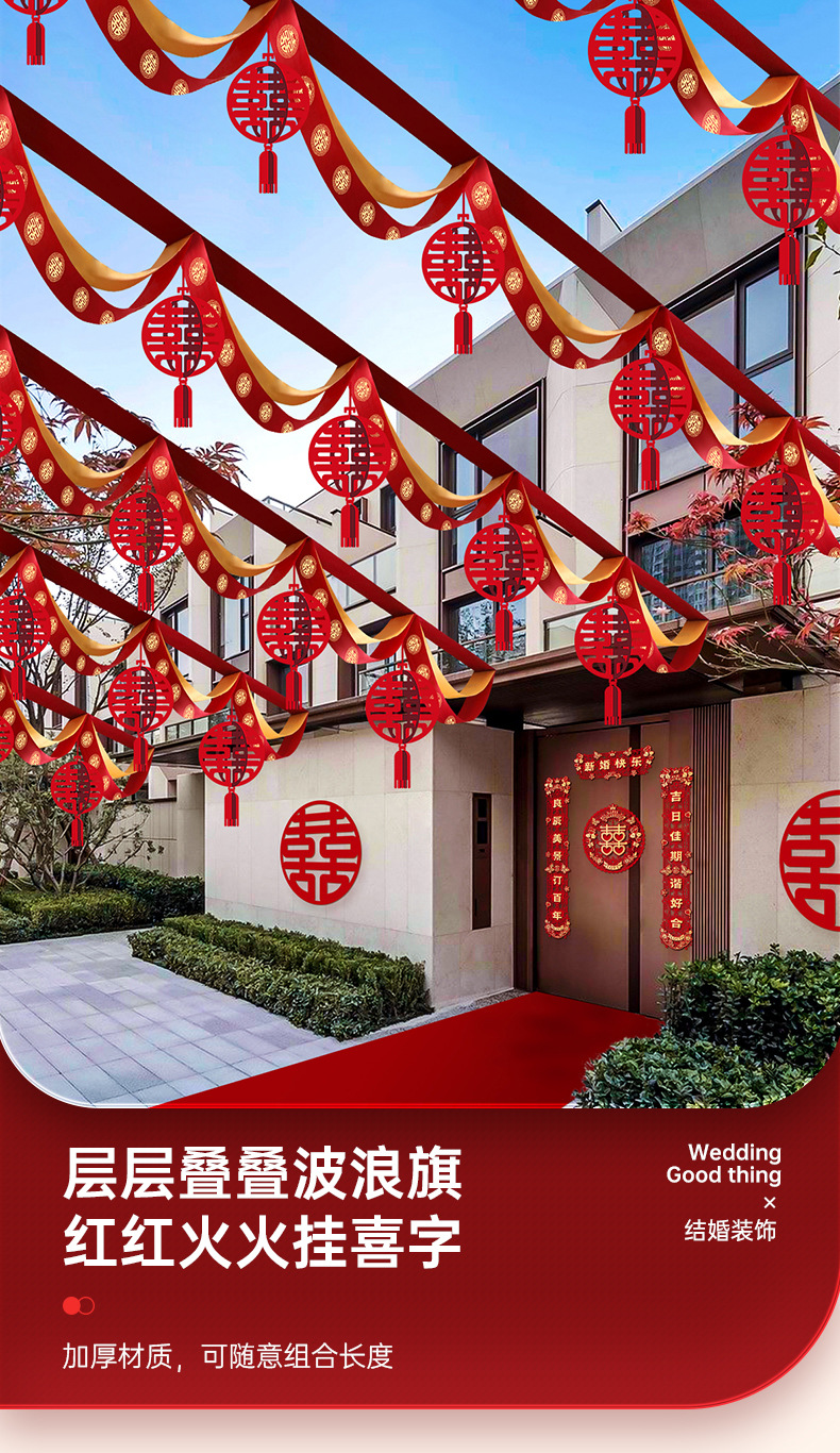 结婚彩带拉花装饰农村院子婚礼现场彩条彩旗场景布置婚庆用品批发