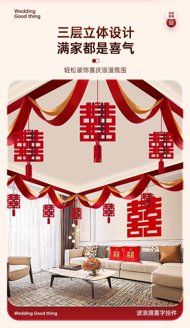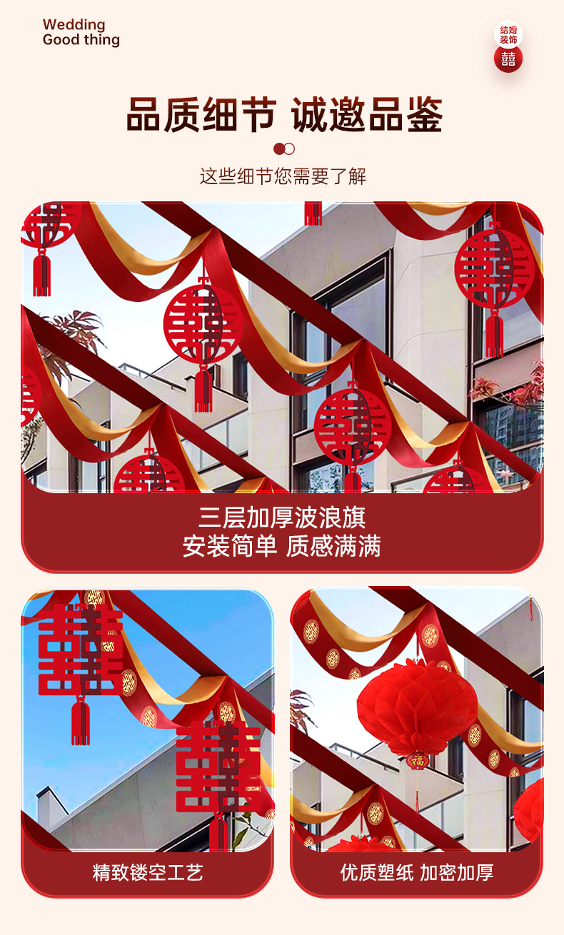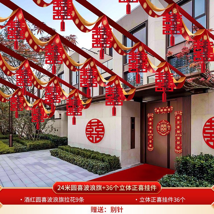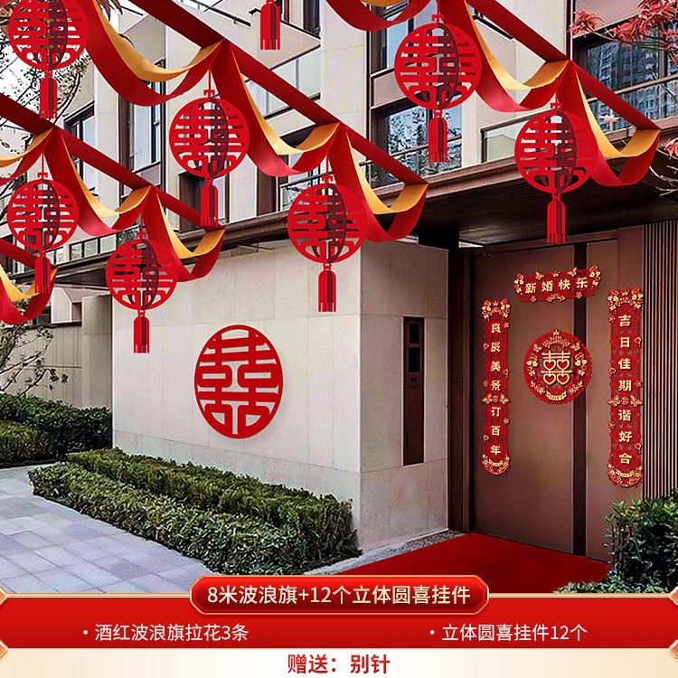 结婚彩带拉花装饰农村院子婚礼现场彩条彩旗场景布置婚庆用品批发