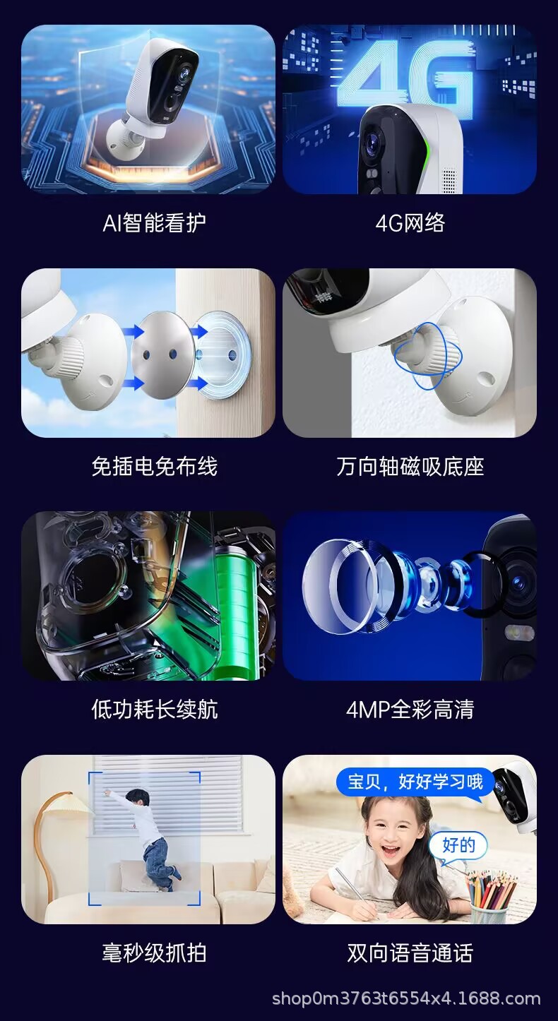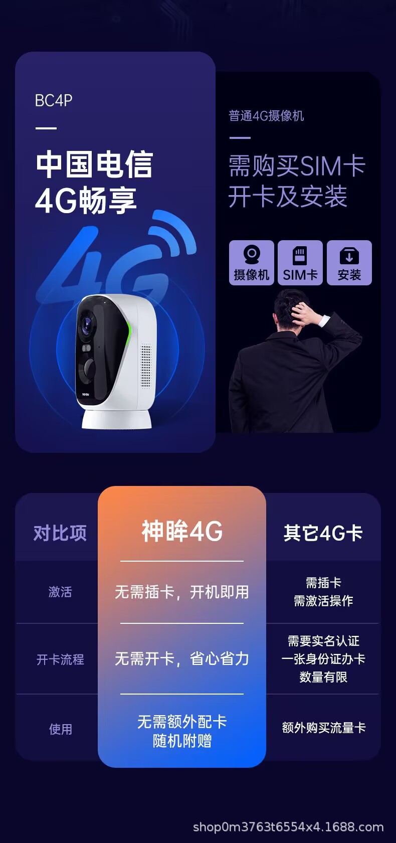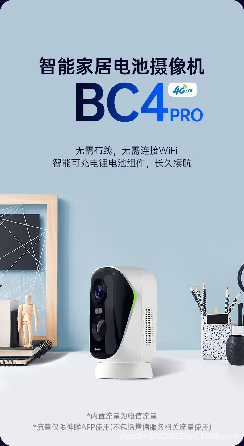神眸BC4Pro/SC4Pro智能摄像头家用监控360度旋转免插电高清免流版