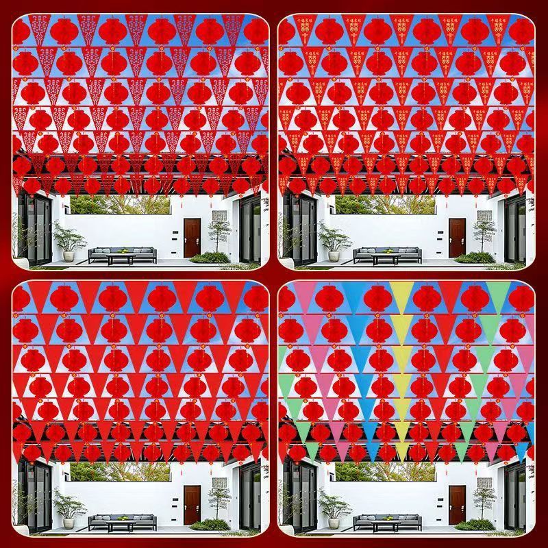 婚礼彩旗婚庆室外院子结婚用品大全灯笼装饰农村拉花彩带布置喜旗