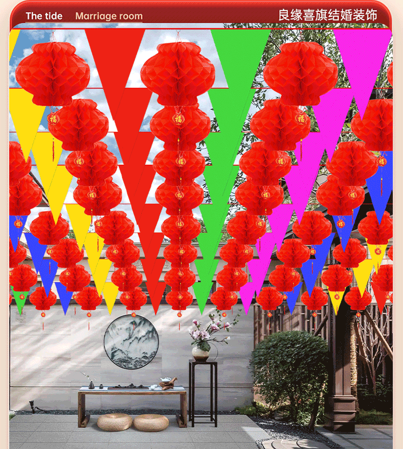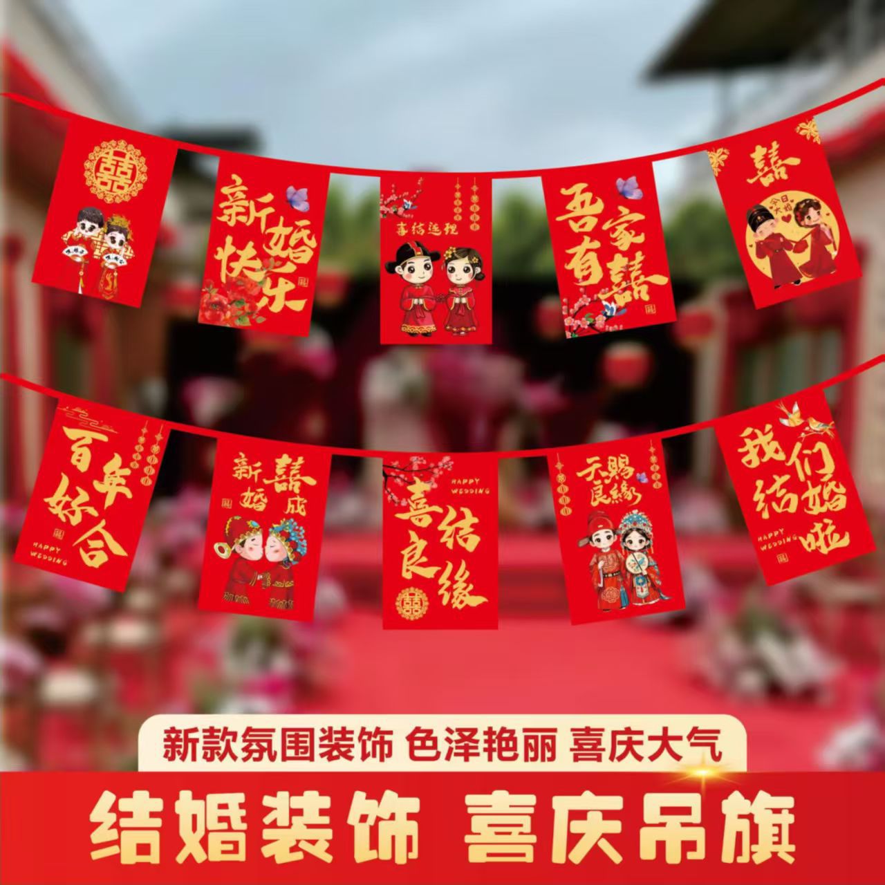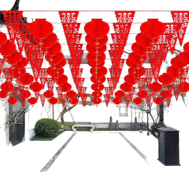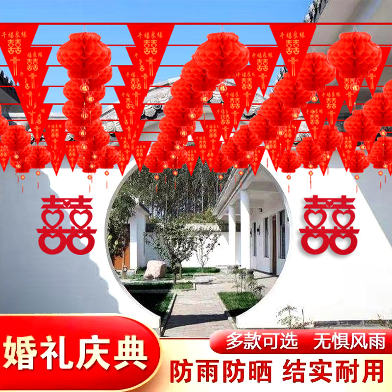 院子婚庆装饰彩旗灯笼婚礼室外开业布置婚房喜字拉花结婚用品大全