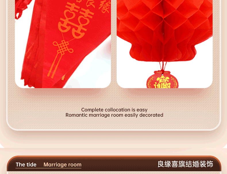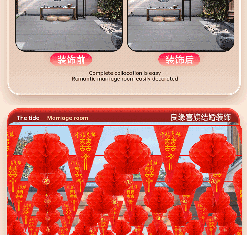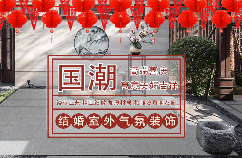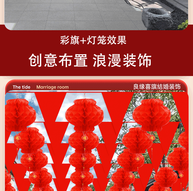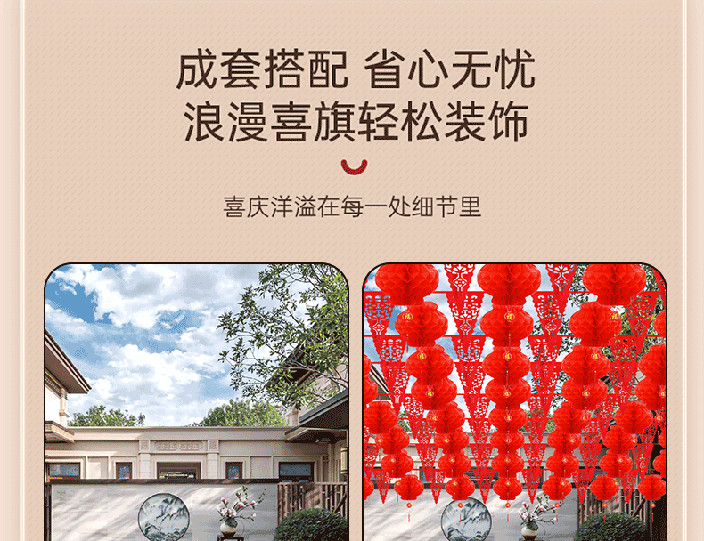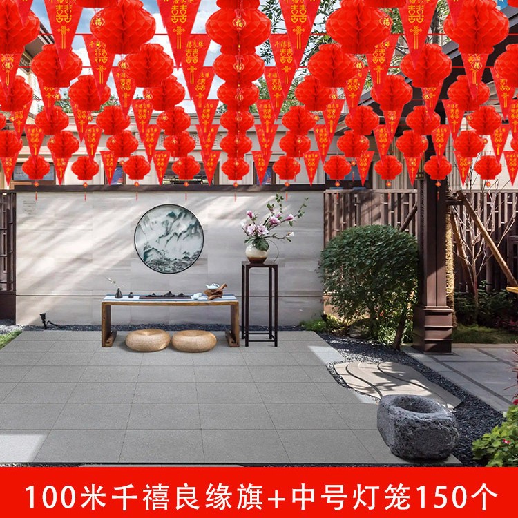 院子婚庆装饰彩旗灯笼婚礼室外开业布置婚房喜字拉花结婚用品大全