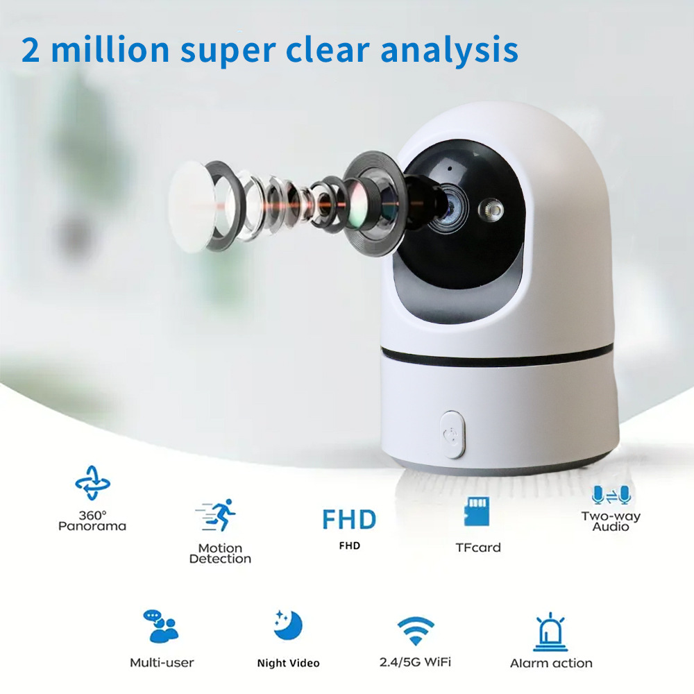 跨境爆款家用无线WiFi摇头机智能室内一键呼叫高清监控摄像头