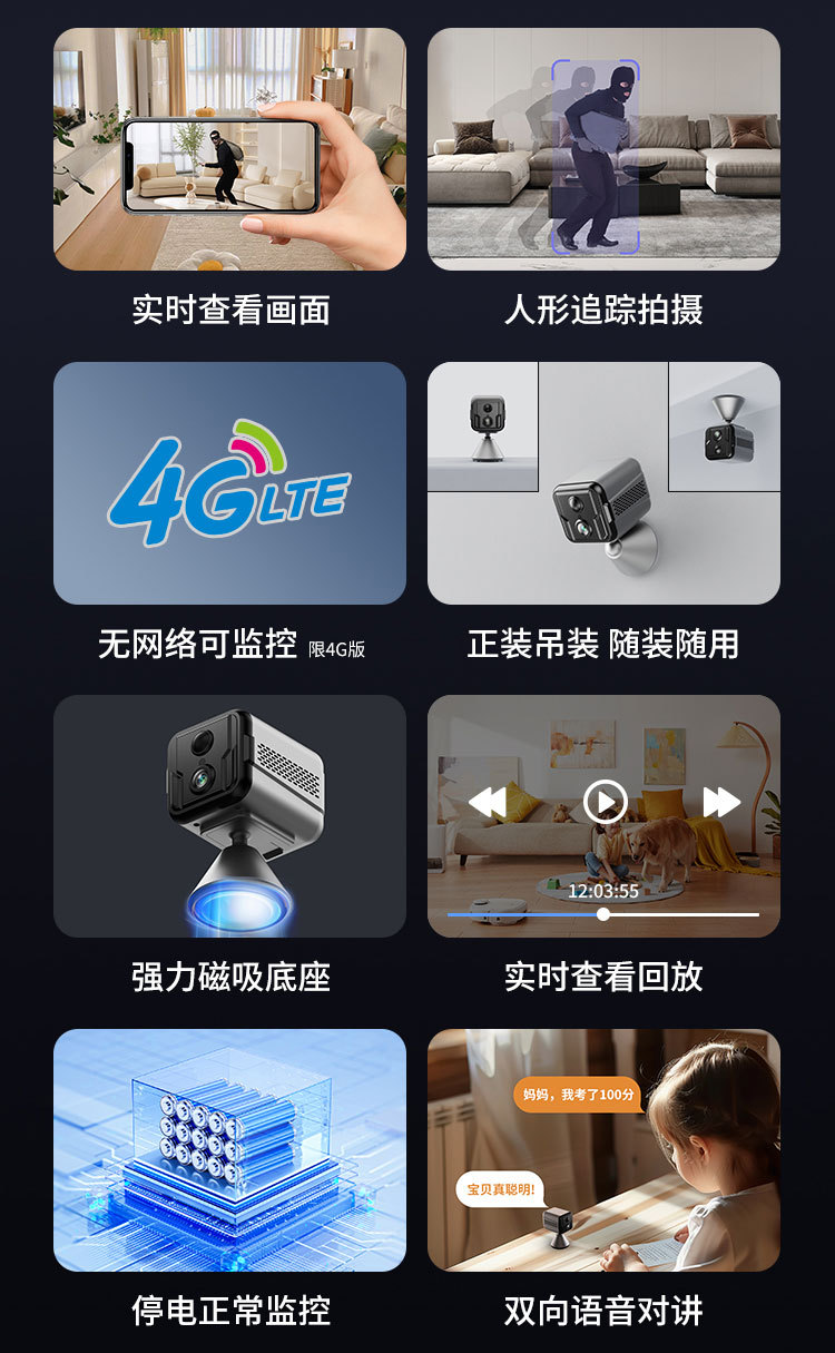 跨境4G户外高清2K家用监控摄像头室外磁吸红外WIFI语音对讲监控器