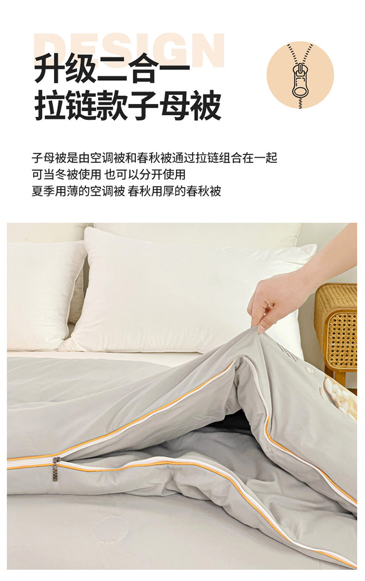 | 220 × 240cm 2.00kg +4.00kg zipper double quilts(220×240cm4斤+8斤拉链款子母被) | USD $37.43 | 999996 bed available |
