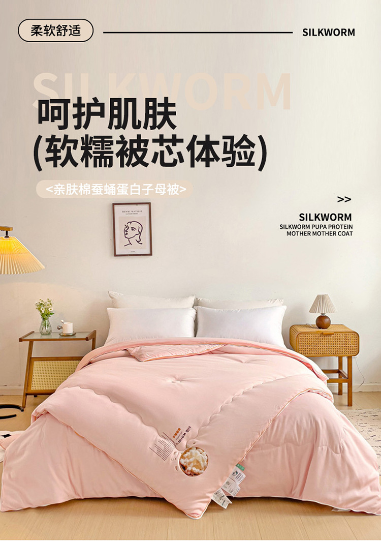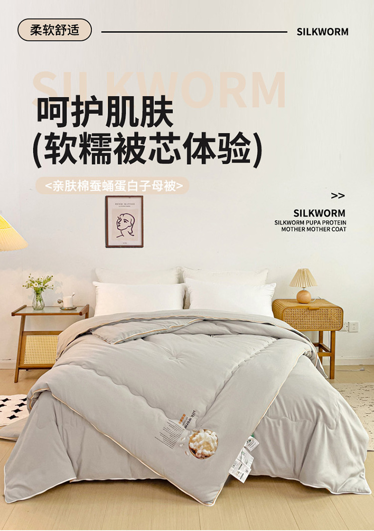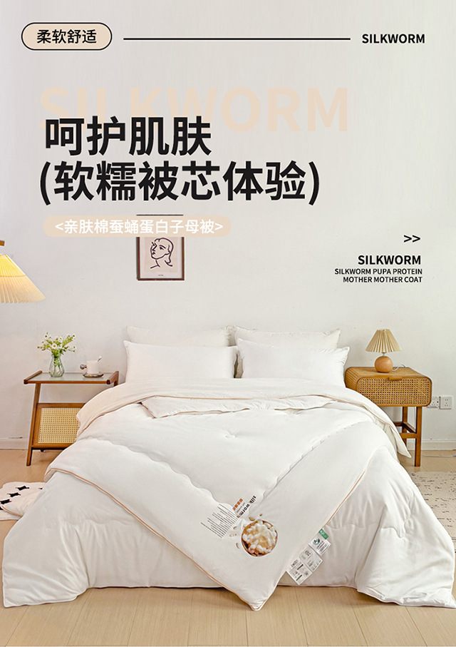 A类母婴级全棉蚕丝被二合一子母被春秋被加厚冬被芯家用宿舍被子