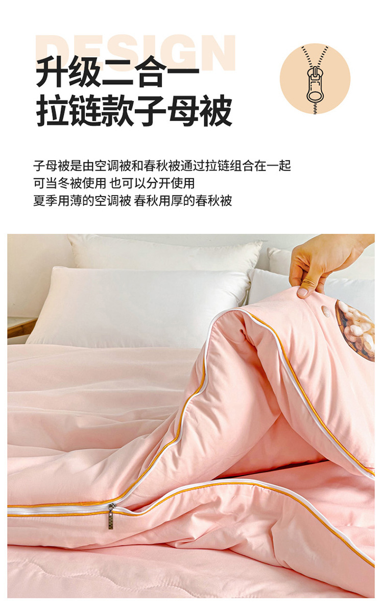 | 200 × 230cm 2.00kg +3.00kg zipper double quilts(200×230cm4斤+6斤拉链款子母被) | USD $32.32 | 999991 bed available |