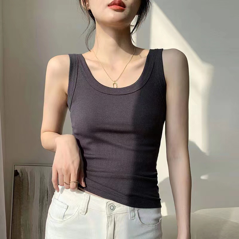 抖音爆款螺纹棉吊带背心女防走光内搭遮副乳打底无袖上衣一件代发