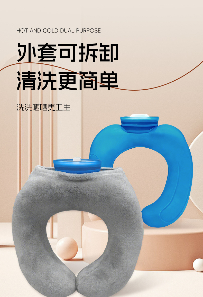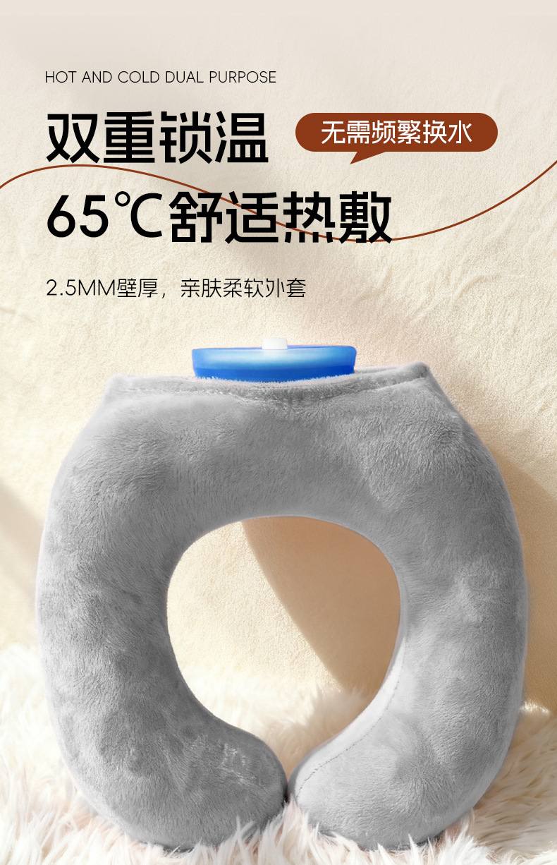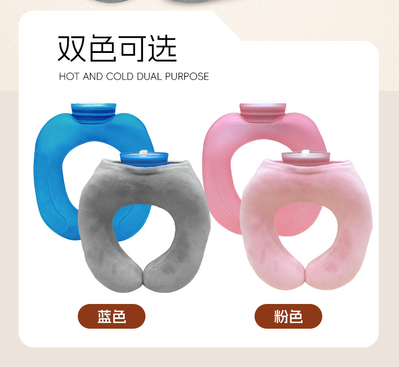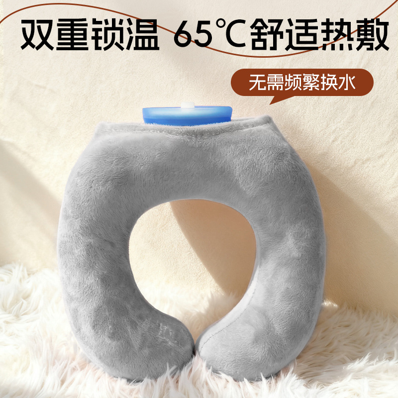 新款注水热水袋U型暖水袋颈椎热敷保暖肩颈脖子暖宝宝防爆加厚