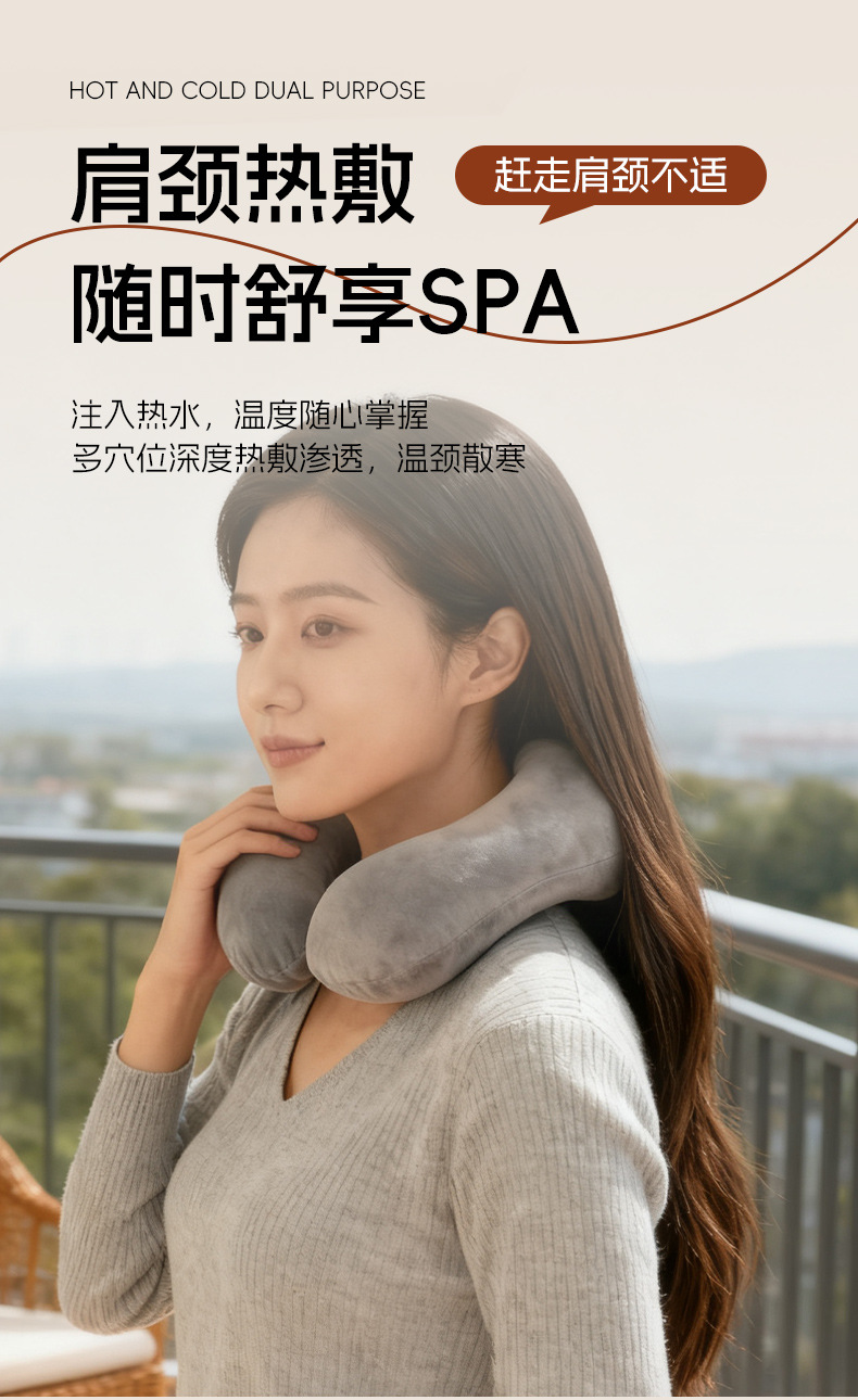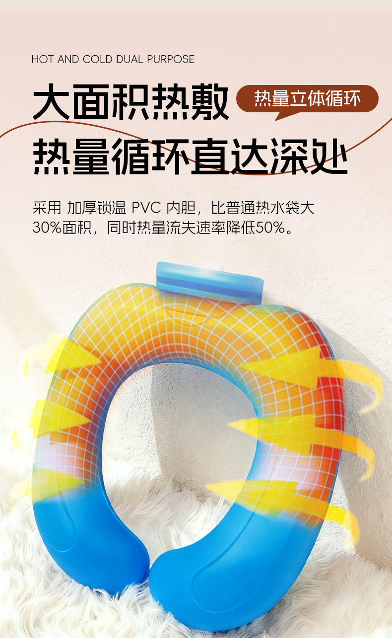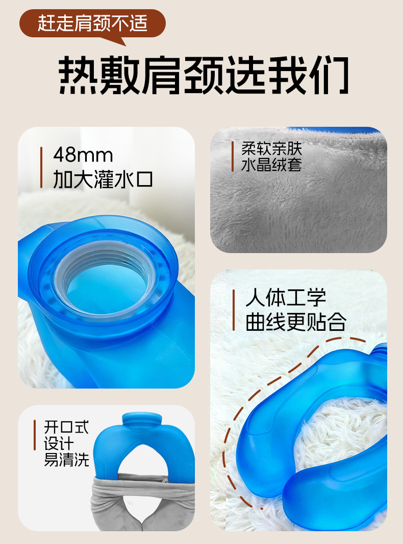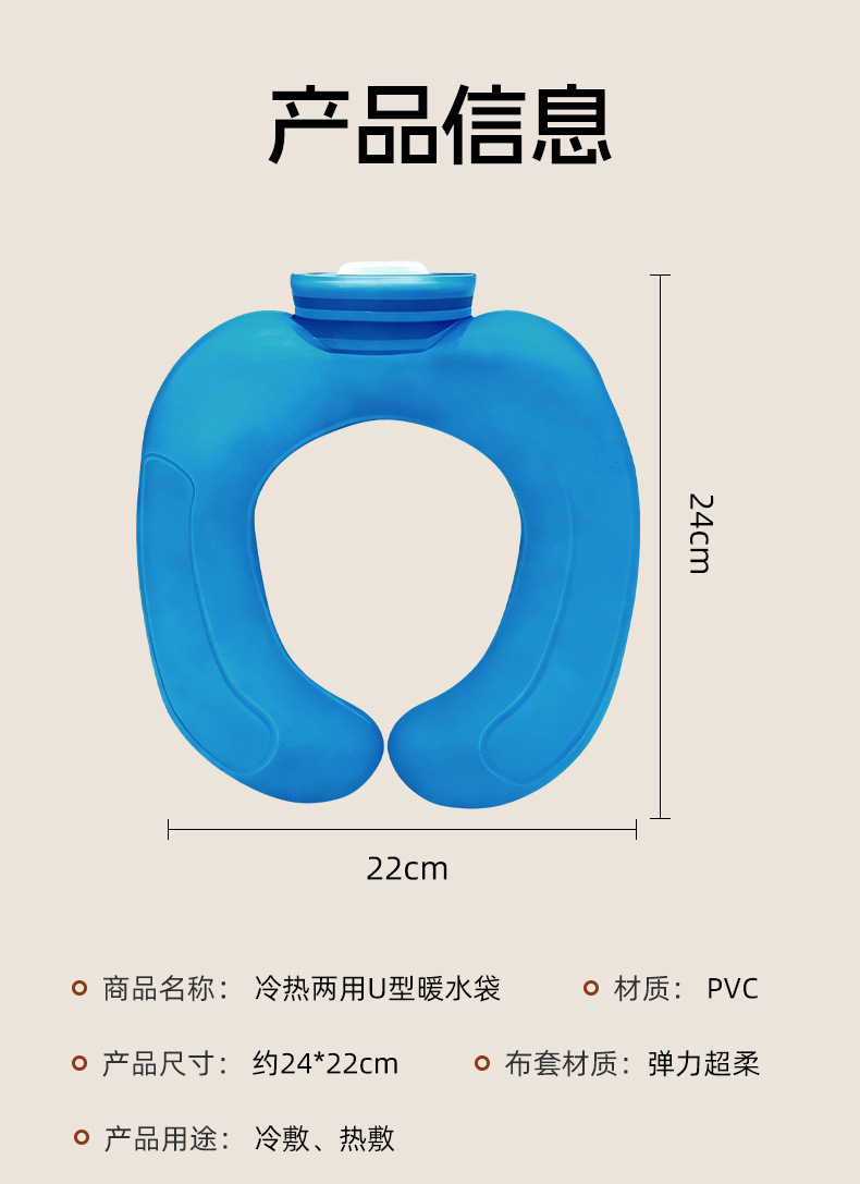 新款注水热水袋U型暖水袋颈椎热敷保暖肩颈脖子暖宝宝防爆加厚