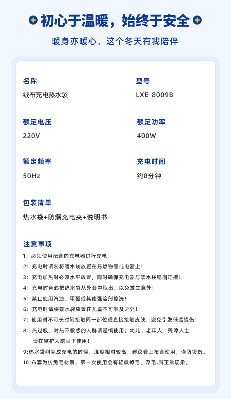 乐雪儿电暖宝充电防爆自动断电毛绒暖手暖肚子国标插电热水袋批发