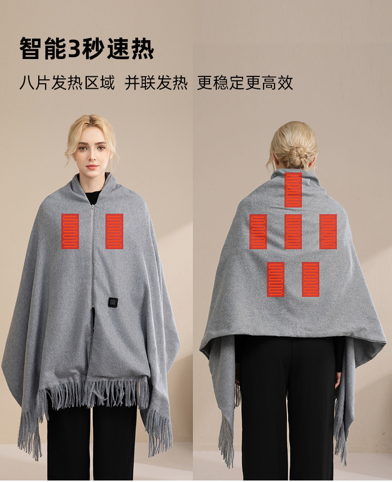 2025年新款电热披肩毯现货加热披肩暖身发热披肩女士长款斗篷跨境