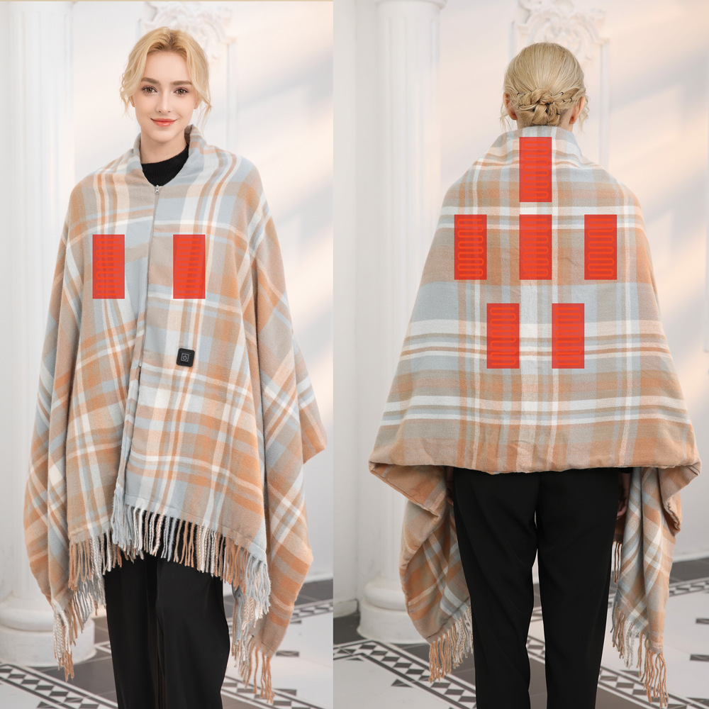 新款加热披肩毯现货电热披肩暖身时尚发热披肩女士长款斗篷跨境