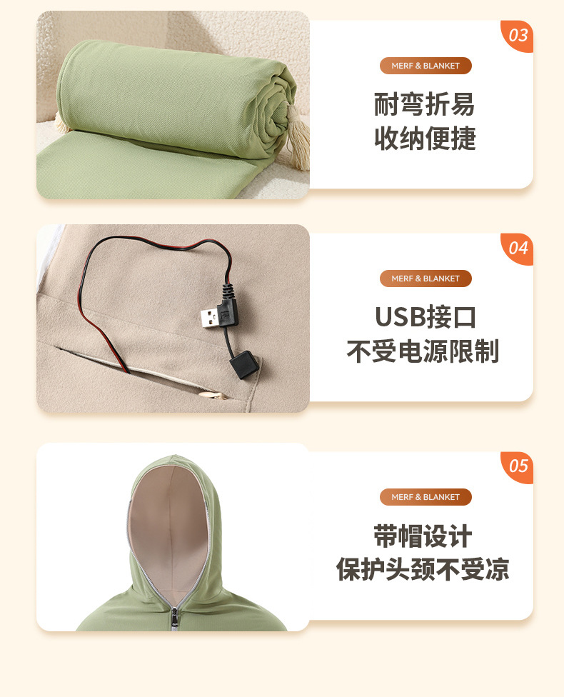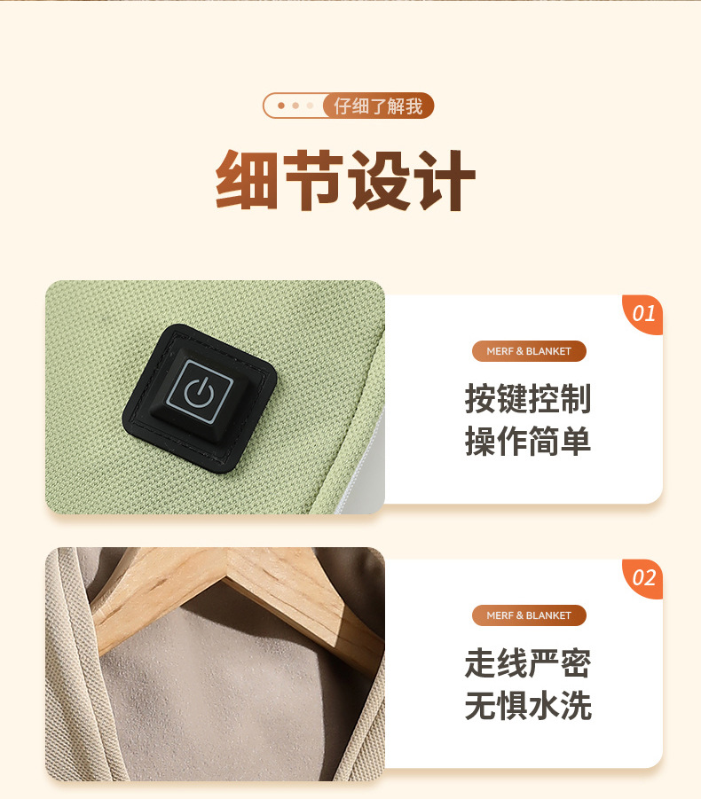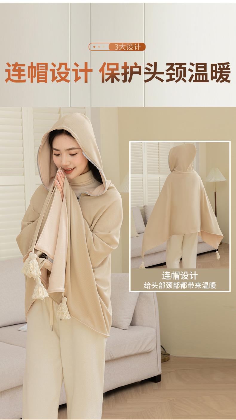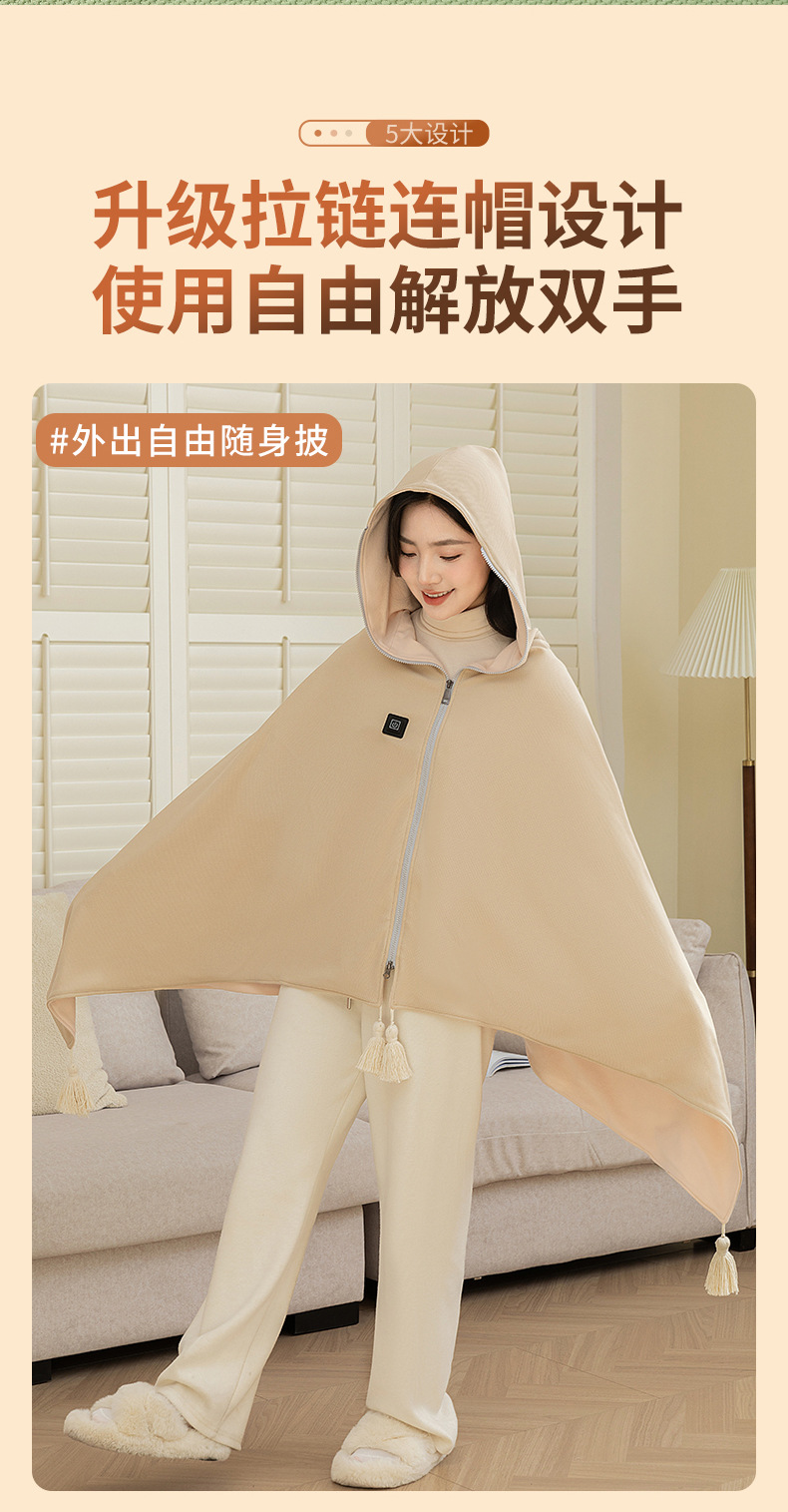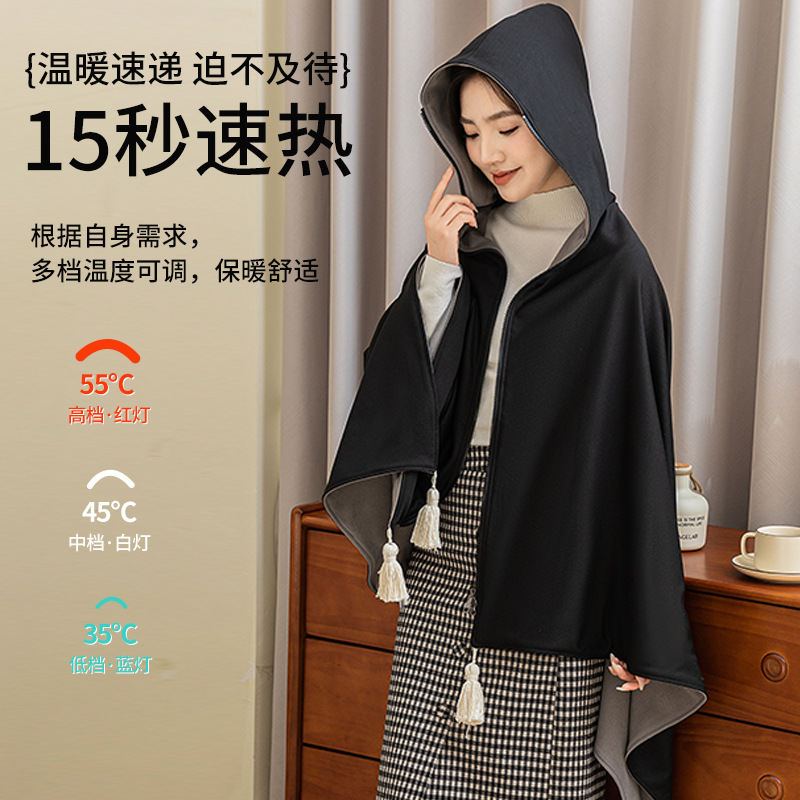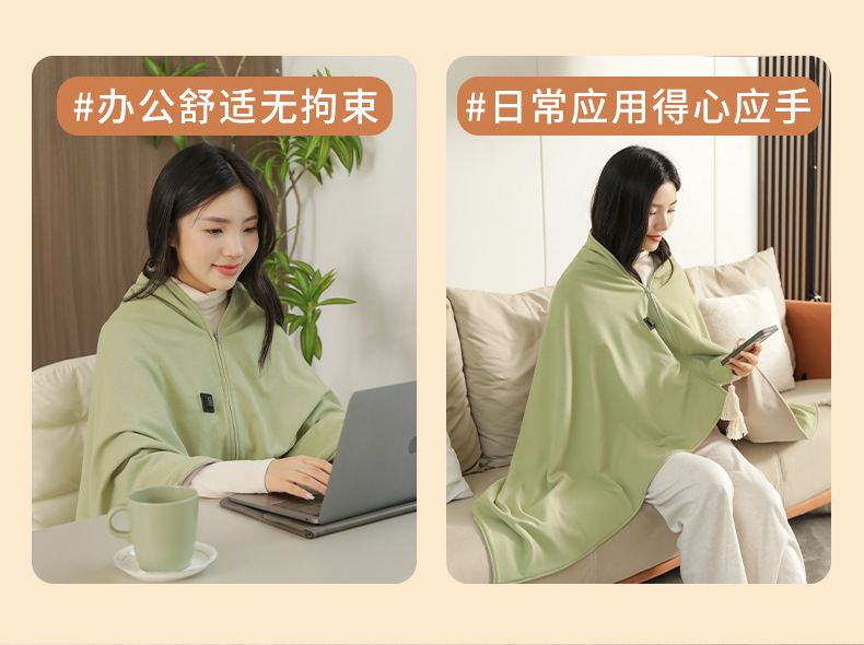 2025新款连帽设计电热毯可水洗办公室披肩午睡加热随身毯好物批发
