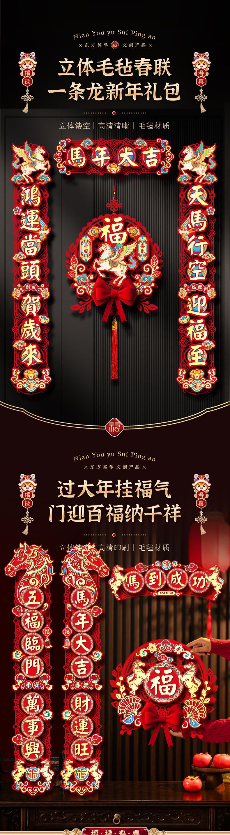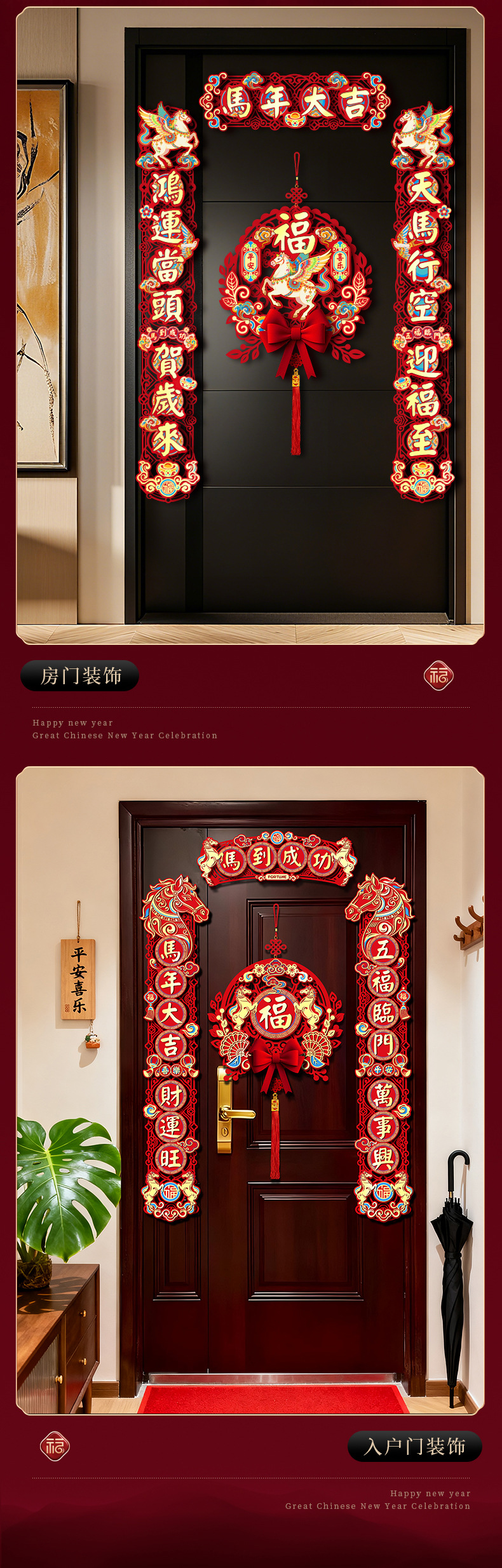 马年对联2026新款春节家用新年磁吸春联批货过年入户门福字贴装饰